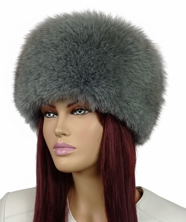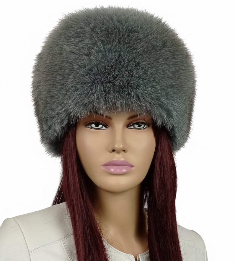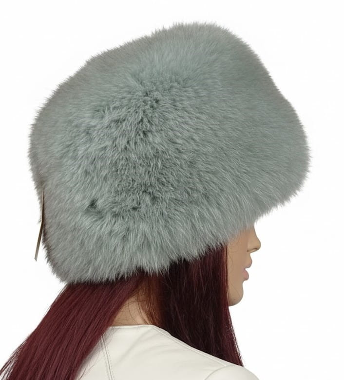 Ekskluzywna czapka „kula” wykonana z wysokiej jakości farbowanego futra lisa, charakteryzująca się niezwykłą miękkością, puszystością i elegancką, pełną formą.