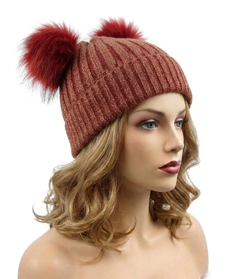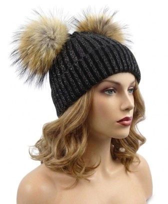 Wyposażona w dwa pompony z naturalnego futra jenota, przyciąga uwagę i dodaje stylizacji efektownego charakteru.