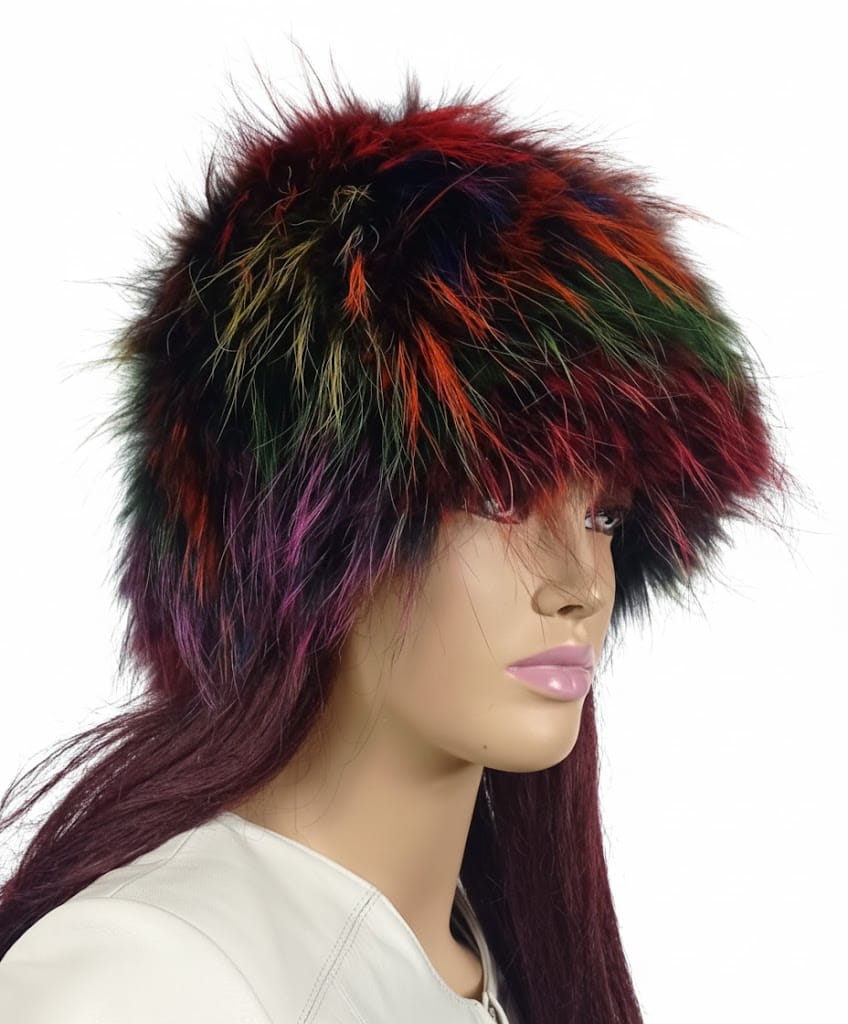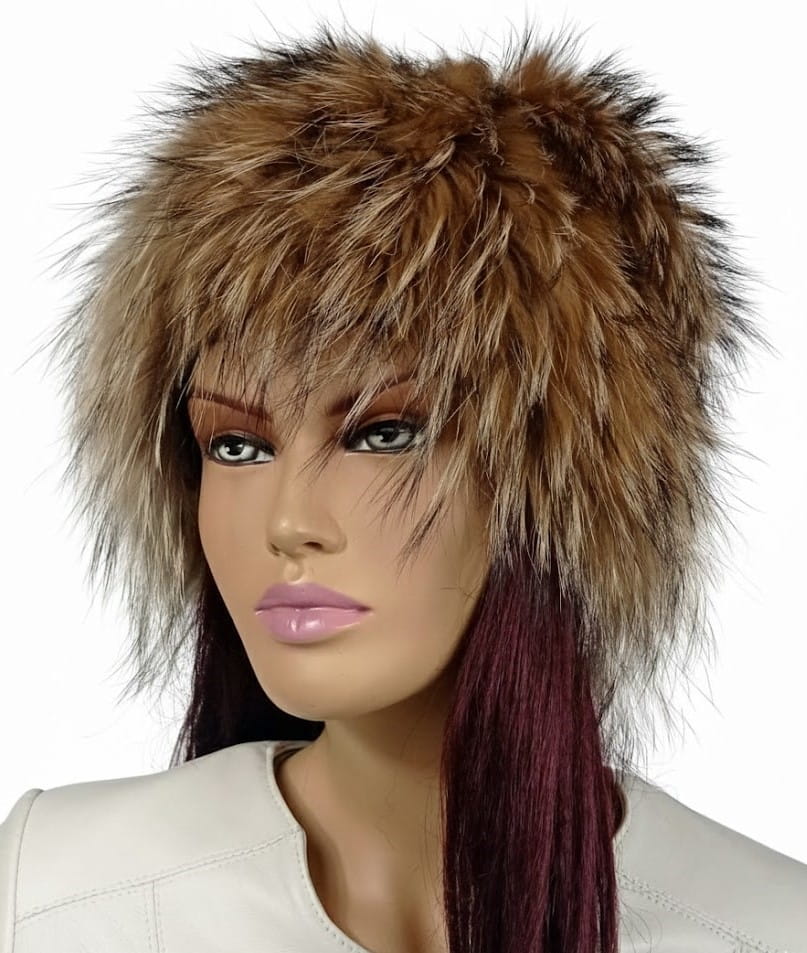 Czapka z naturalnego futra jenota na dzianinie.