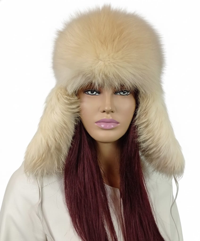 Czapka z futra lisa rudego, odbarwiana, to efektowny i luksusowy dodatek na chłodniejsze dni.