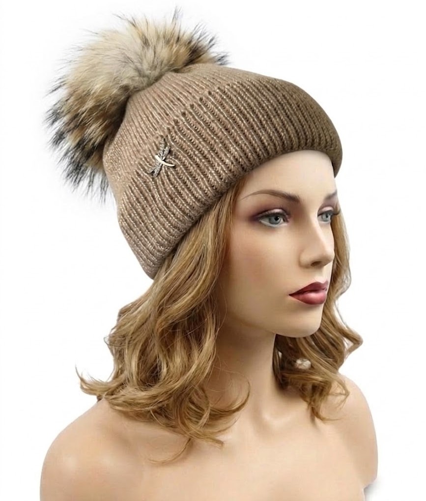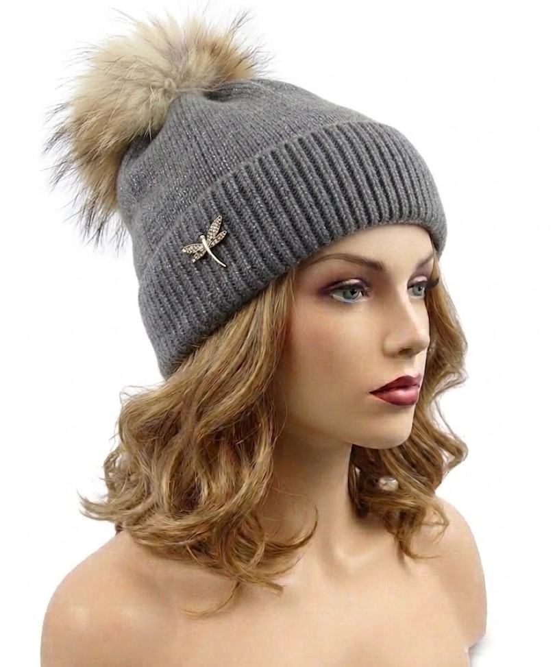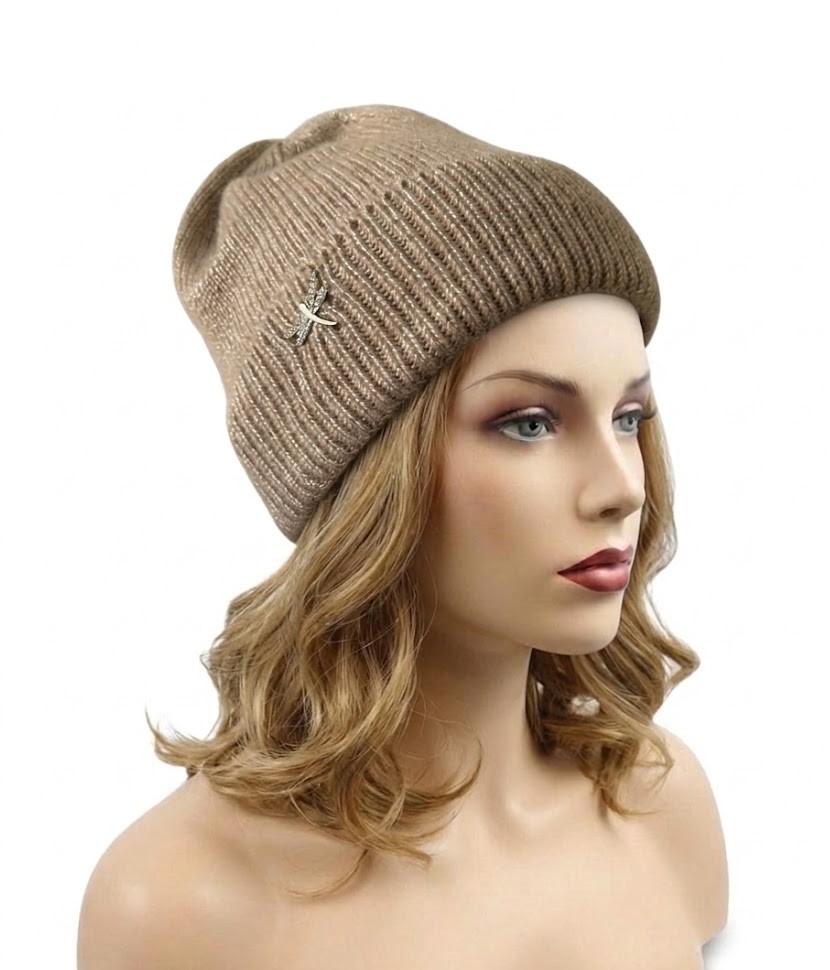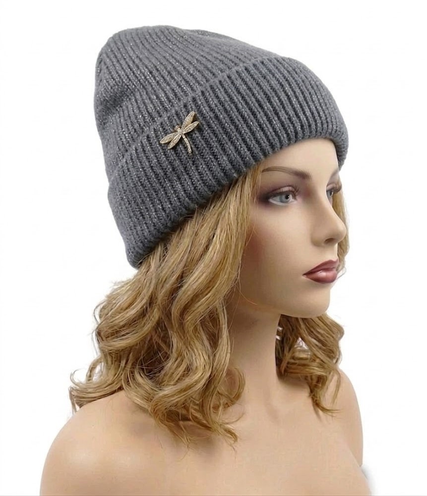 Czapka zimowa z broszką w kształcie ważki to stylowy i oryginalny dodatek na chłodne dni.