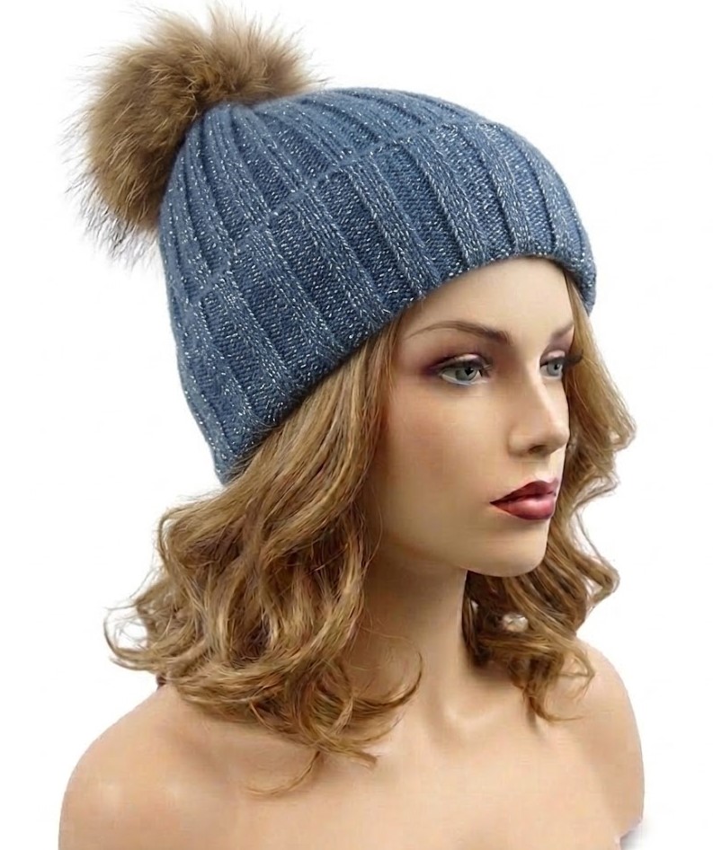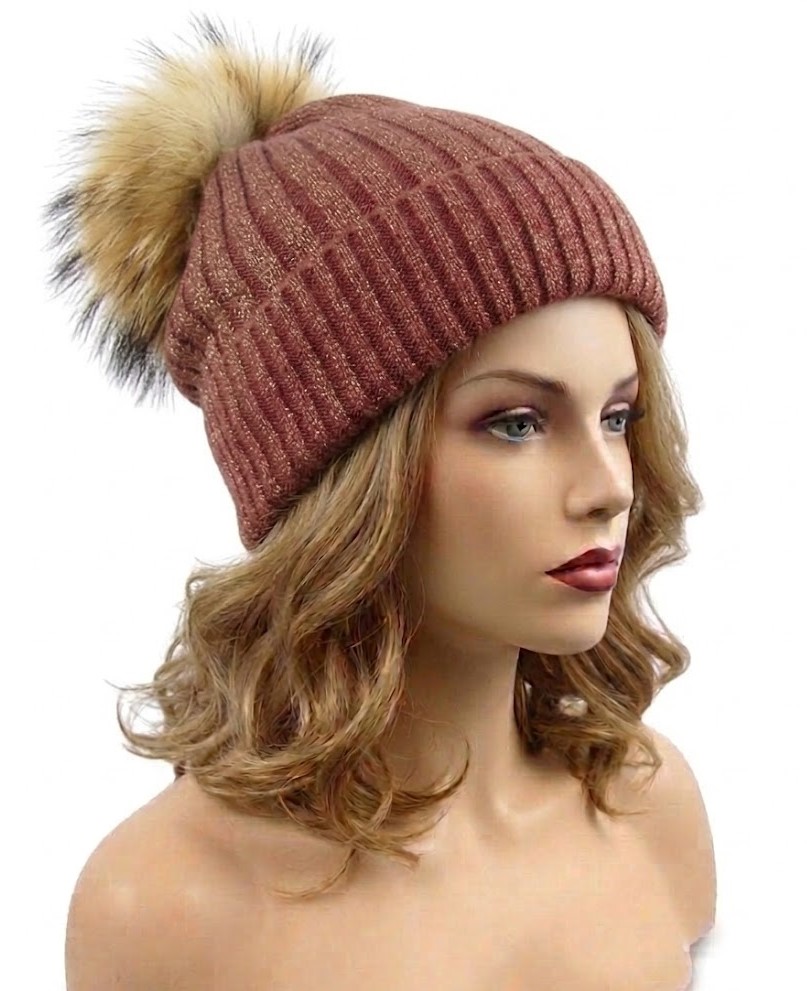 Model posiada efektowny pompon z naturalnego futra, który podkreśla modny i luksusowy styl.
