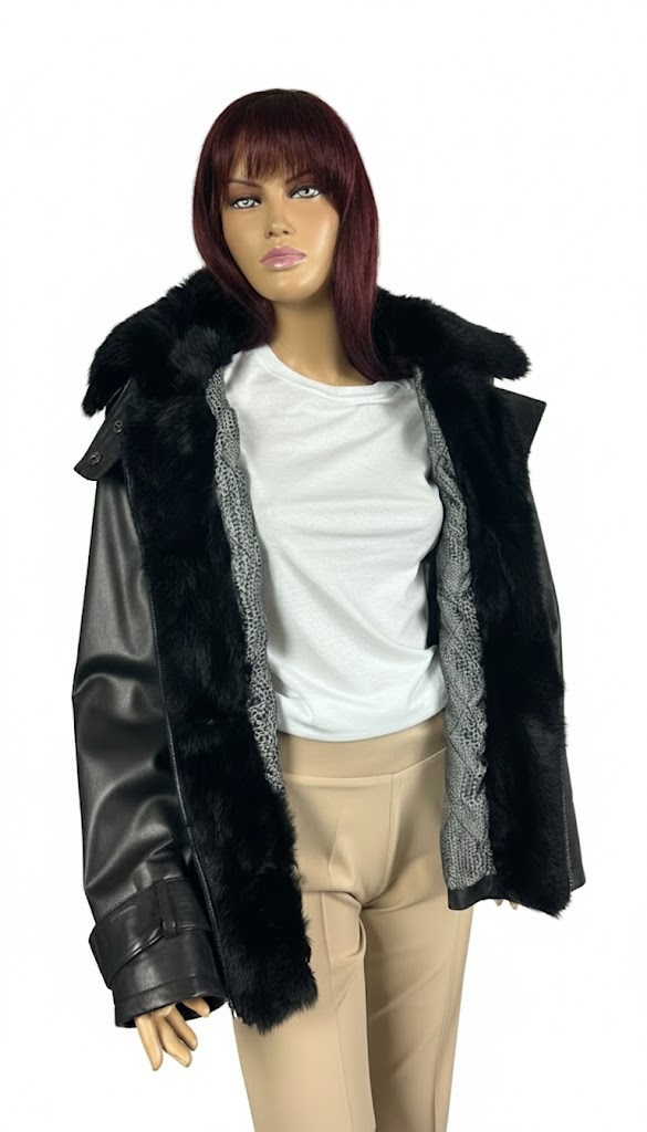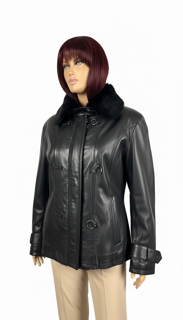 Czarna kurtka skórzana damska z podszewką i futerkiem