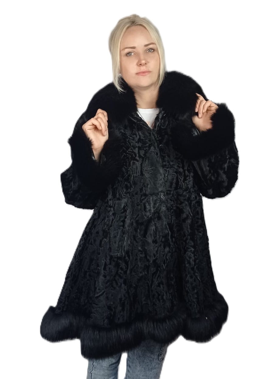 Damska kurtka z naturalnego futra karakuł – z obszyciem z lisa RITA