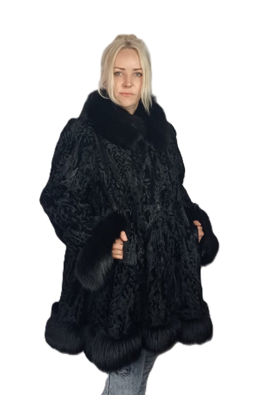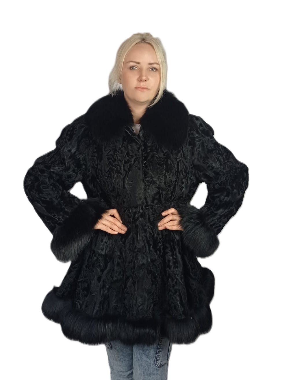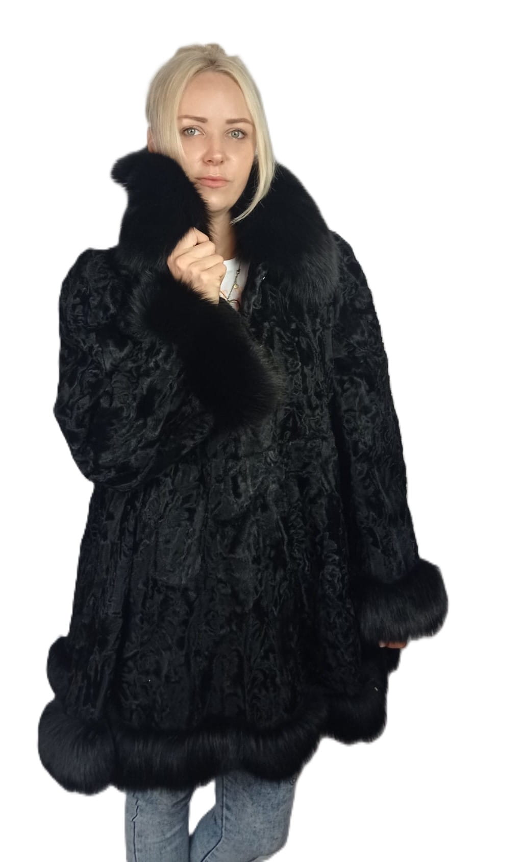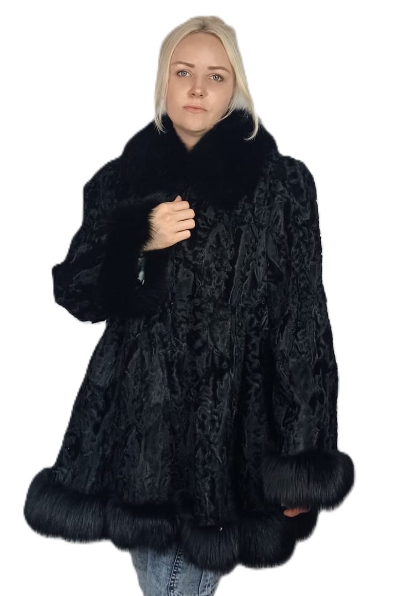 Damska kurtka z naturalnego futra karakuł – z obszyciem z lisa