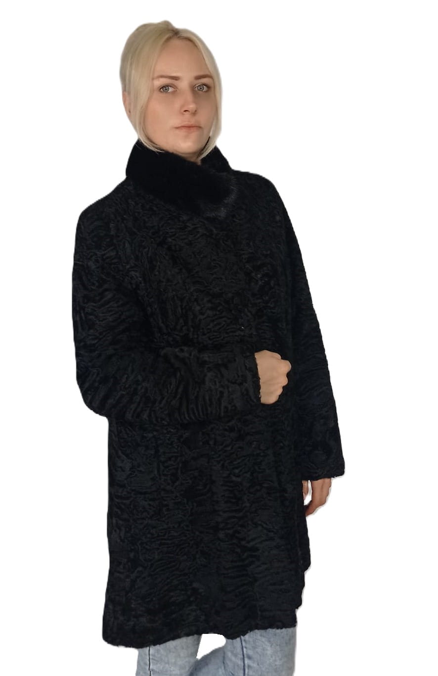 Ekskluzywne futro z karakuła z kołnierzem z norki – klasyczna elegancja