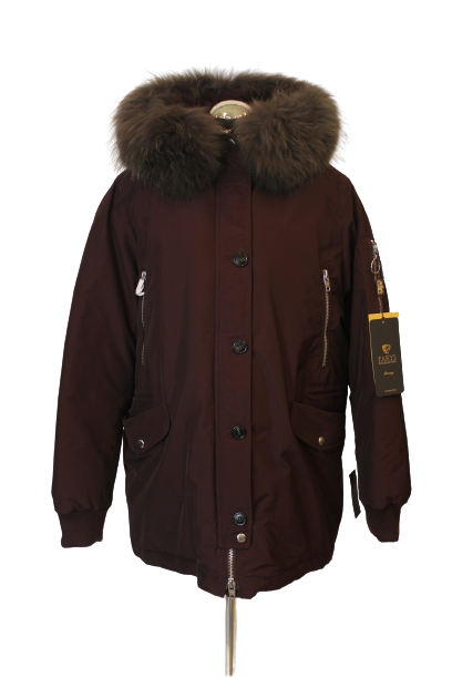 Modna kurtka zimowa z kapturem obszytym delikatnym futrem jenota (możliwość odpięcia) .