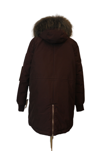 Rozmiar kurtki to 44, a kolor futerka przy kapturze ciemnoszary/grafit.