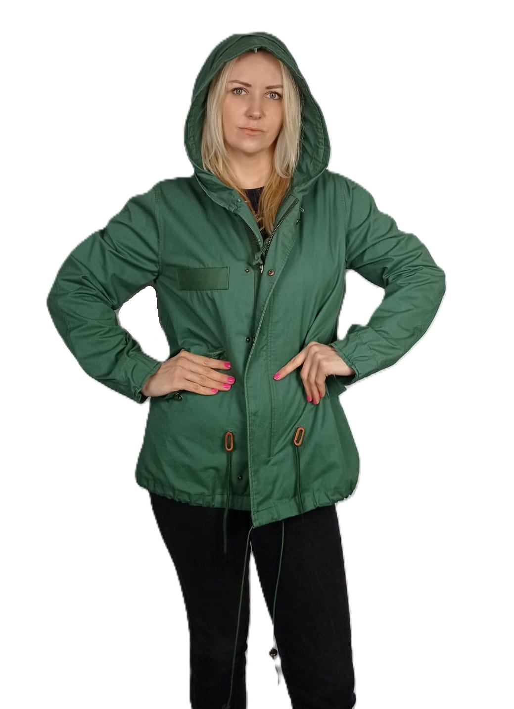 Zewnętrzna kurtka parka – klasyczna forma z kapturem, wykonana z wytrzymałego materiału. Posiada ściągacze w talii i u dołu oraz regulowane mankiety na rzepy. Po odpięciu wewnętrznej warstwy można ją nosić bez obszycia futrem lisa, w lżejszej, bardziej codziennej wersji - zapięcie na suwak i zatrzaski.