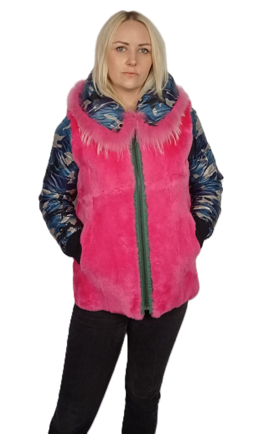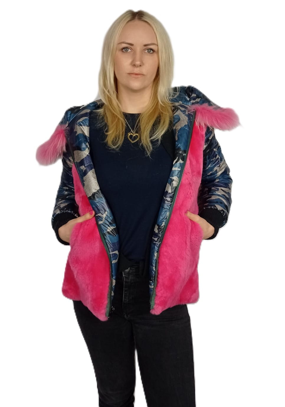 Rewersyjny wariant – po odwróceniu kurtki moro, futerko można nosić na zewnątrz jako niezależną, wyjątkową kurtkę o modnym i efektownym wyglądzie- zapięcie na suwak.