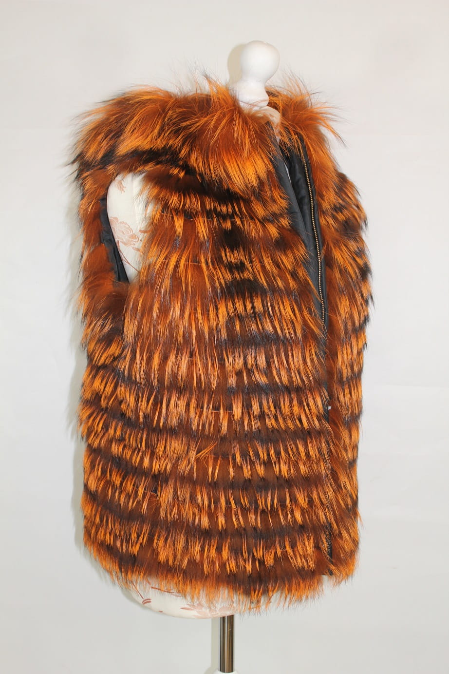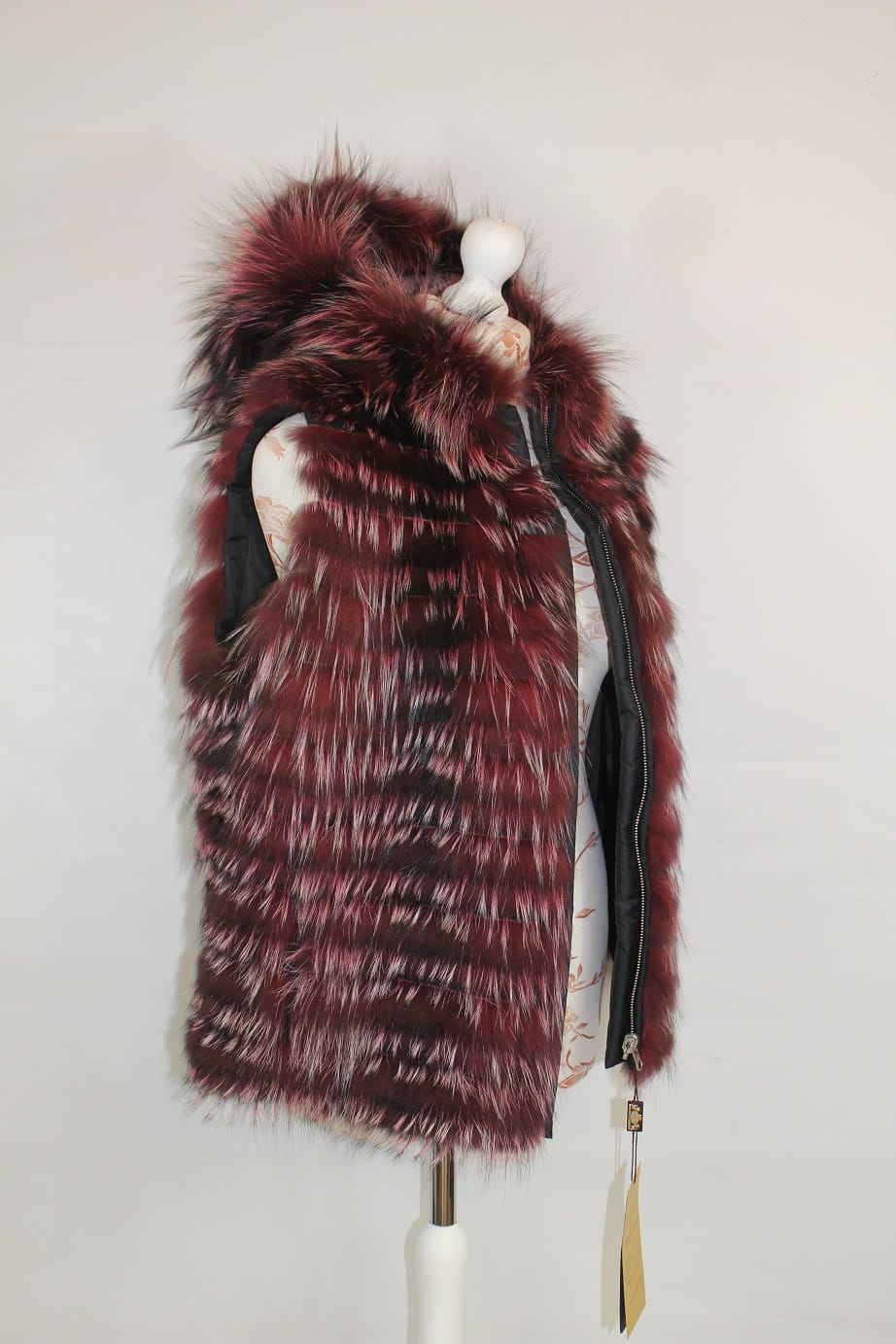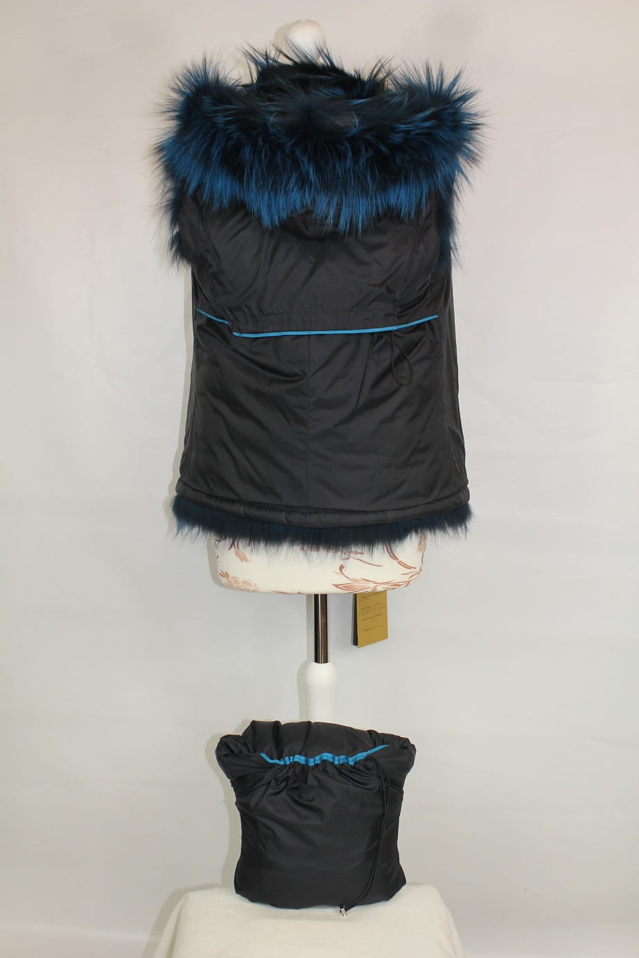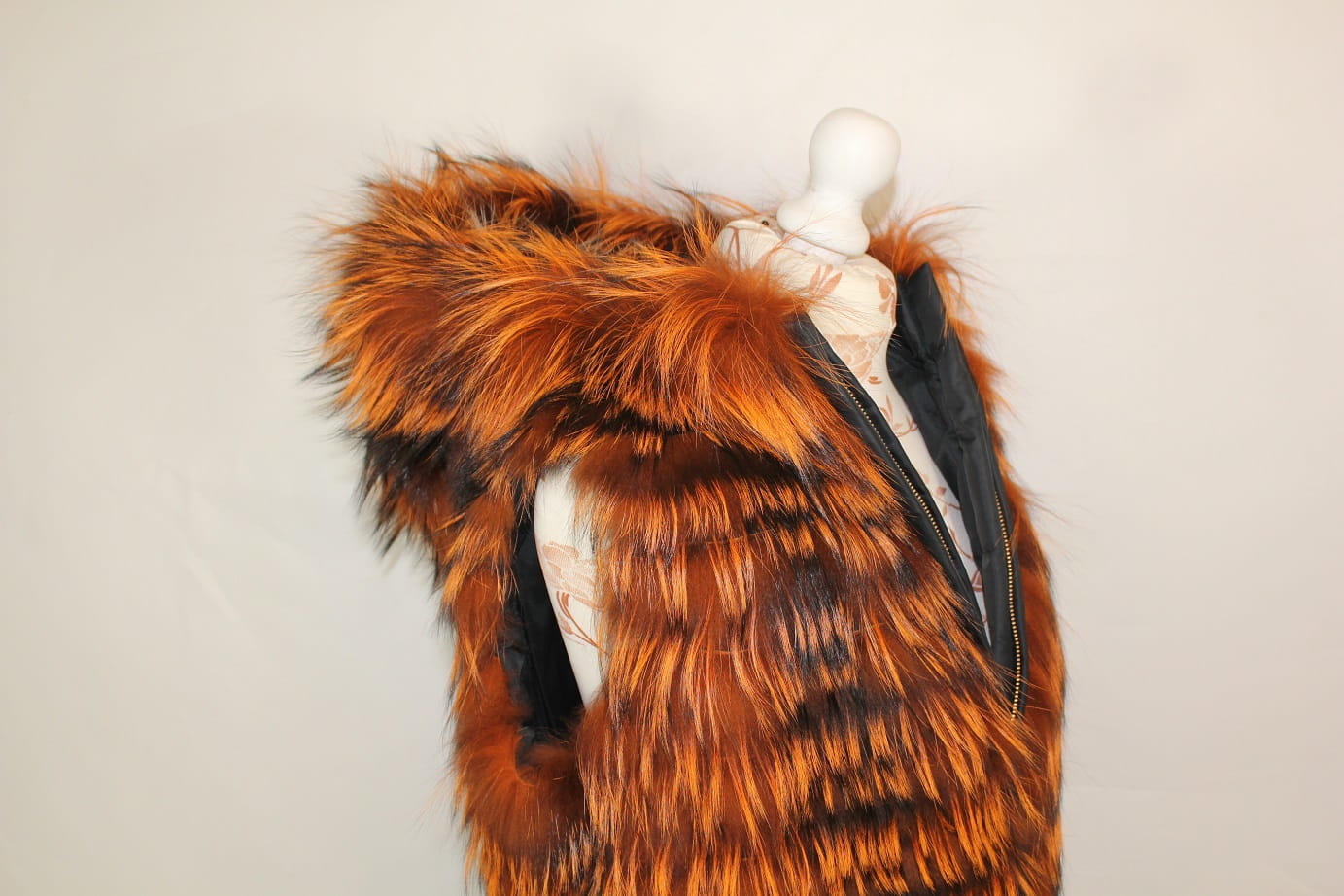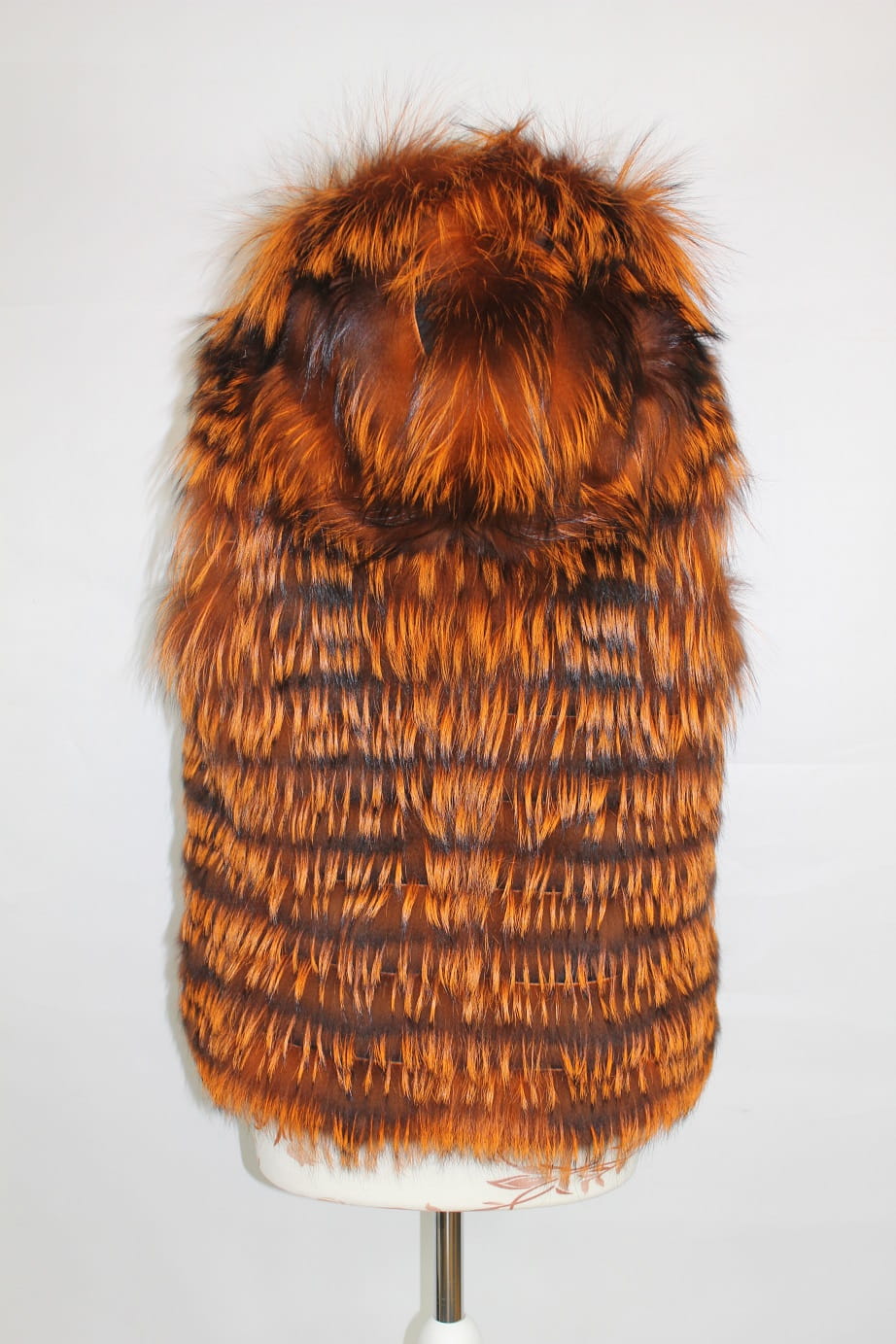 Sportowa kamizelka z naturalnego futra lisa z kapturem