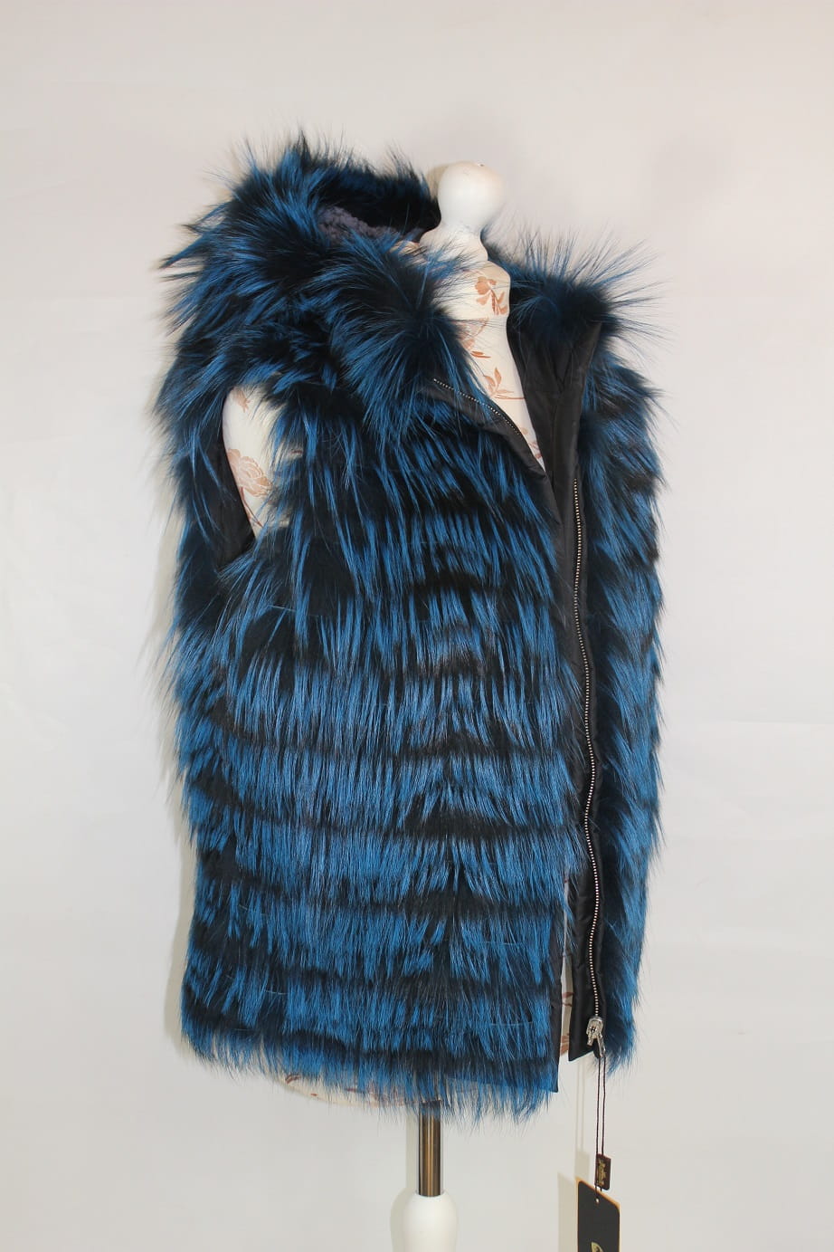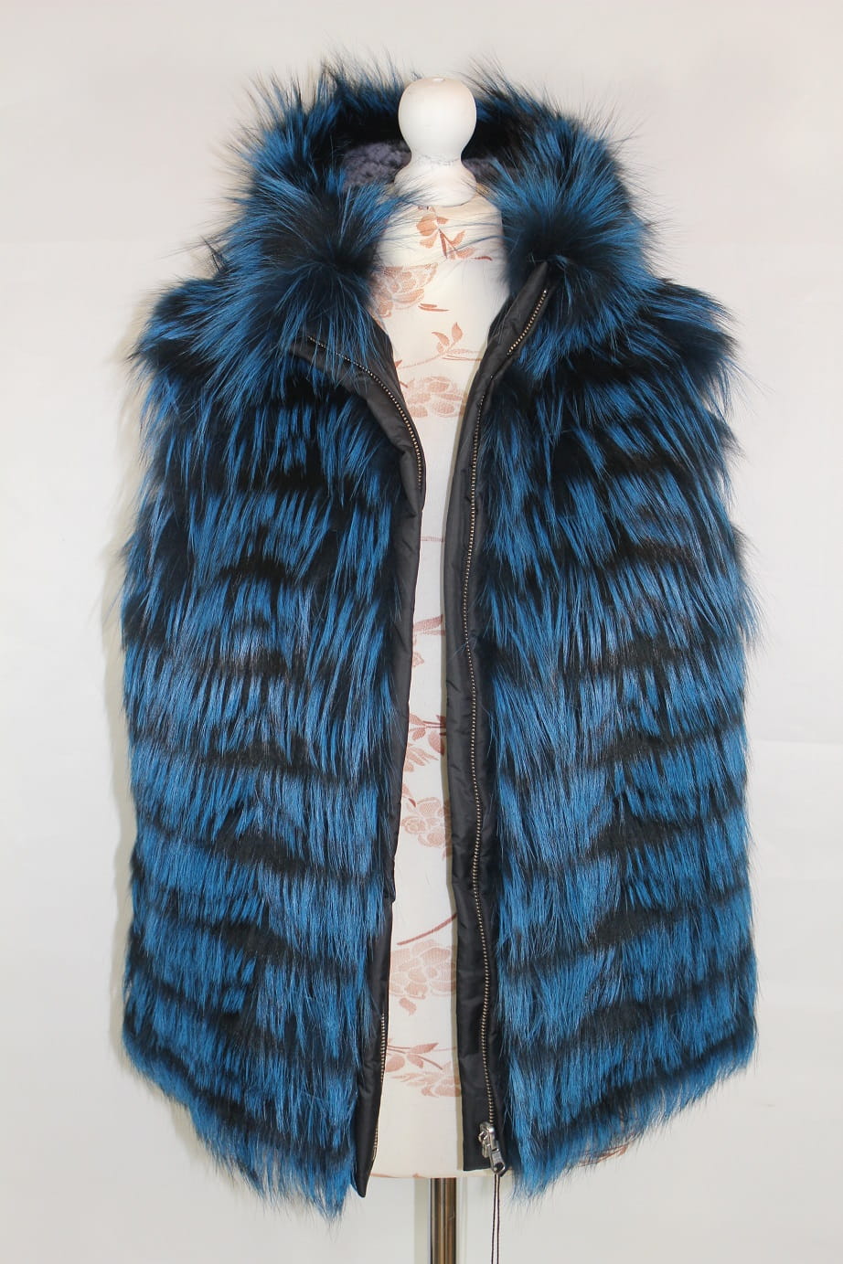 Nowoczesna kamizelka damska w sportowym stylu, wykonana z naturalnego futra lisa srebrnego.