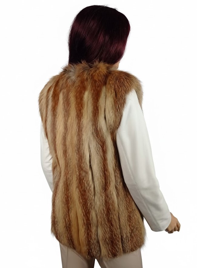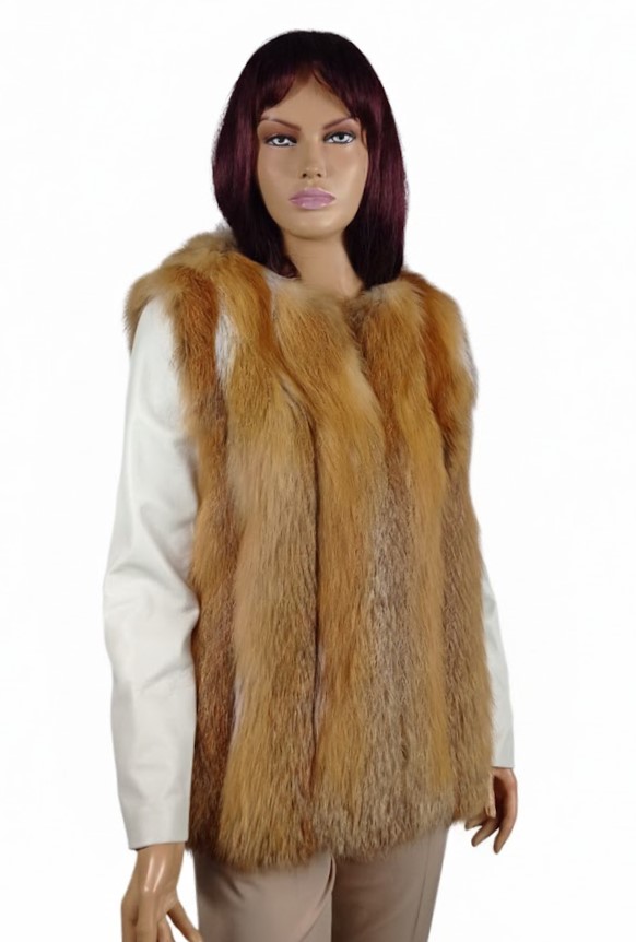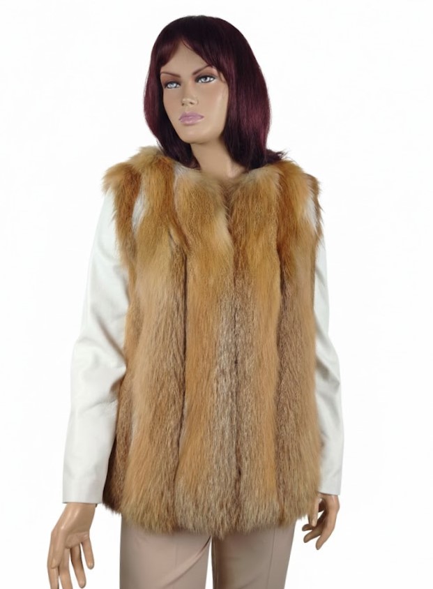 Elegancka kamizelka z naturalnego futra lisów rudych to ponadczasowa propozycja dla kobiet ceniących luksus i wyrazisty styl.