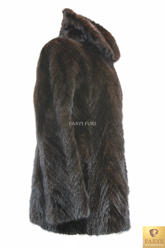 Damska kurtka z naturalnego futra norek – klasyczny fason w głębokim odcieniu brązu.
