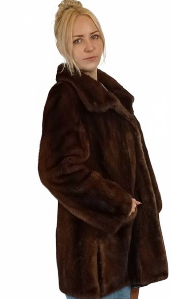 Klasyczne futro damskie wykonane z naturalnych brązowych norek to ponadczasowa propozycja dla kobiet ceniących elegancję i luksus.