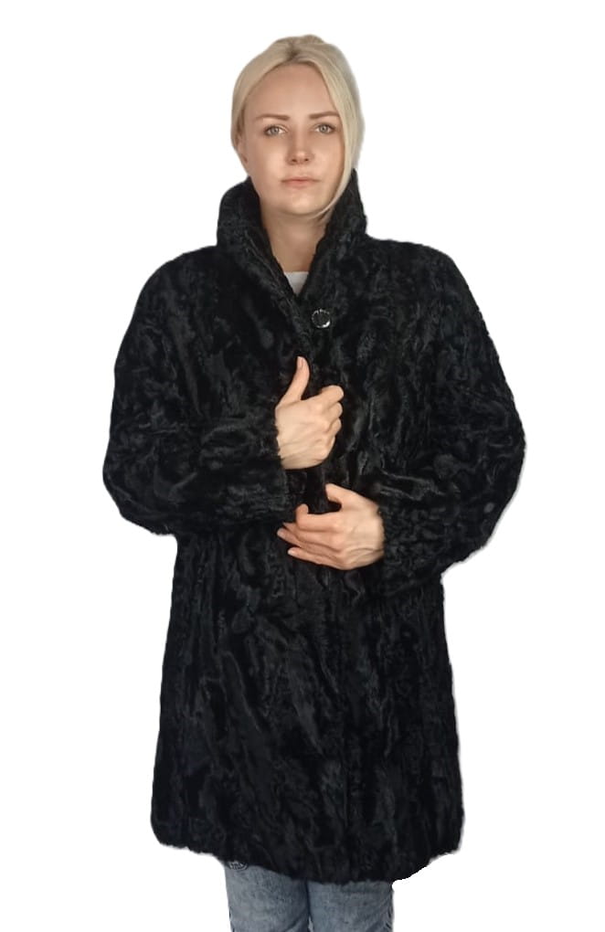 Model Kaja to klasyczna kurtka wykonana z naturalnego futra karakułów w głębokim, szlachetnym odcieniu czerni.