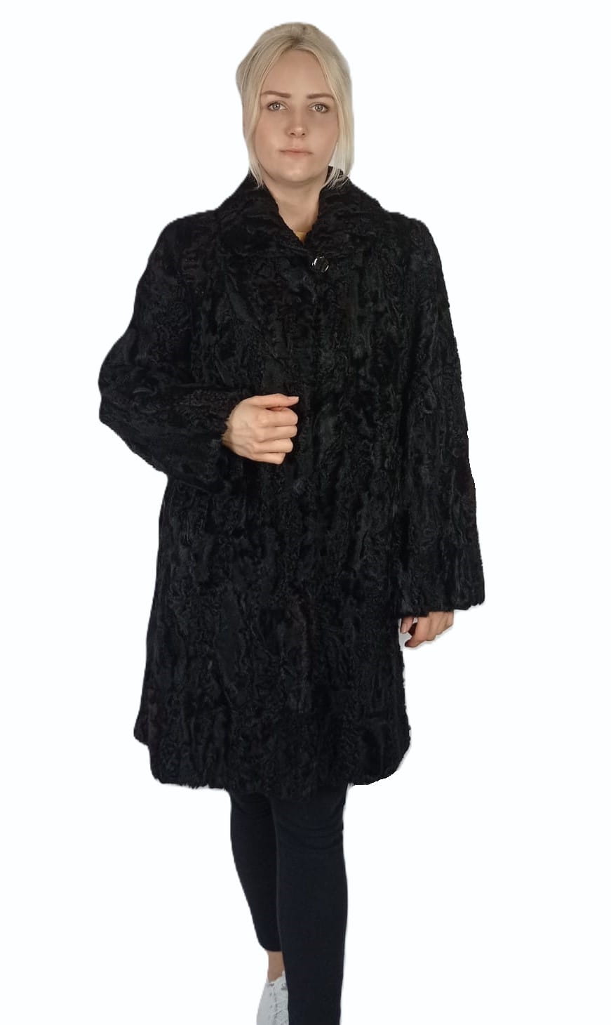 Kurtka z naturalnego futra karakułów. Model Kaja B – klasyczny kołnierz