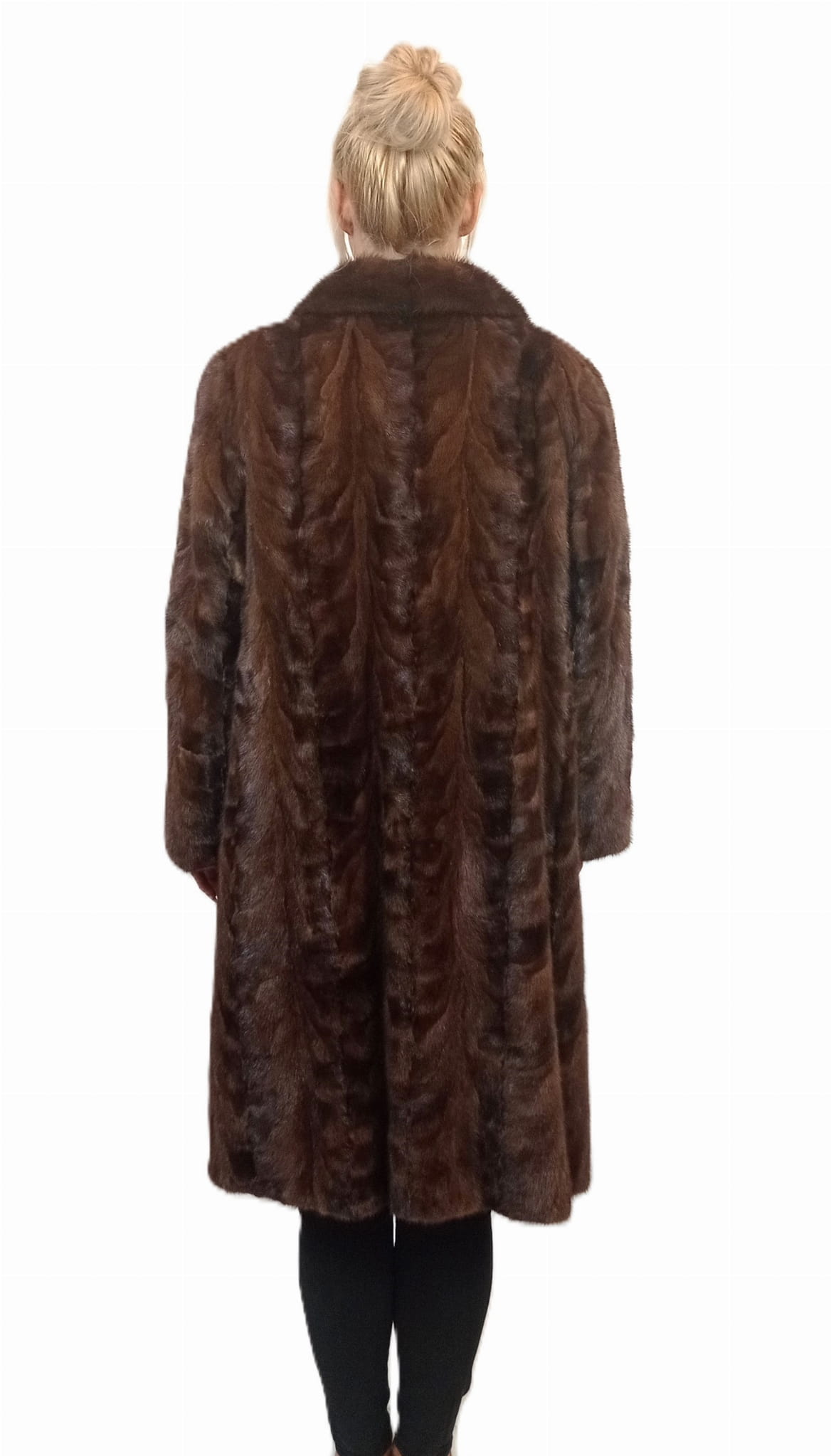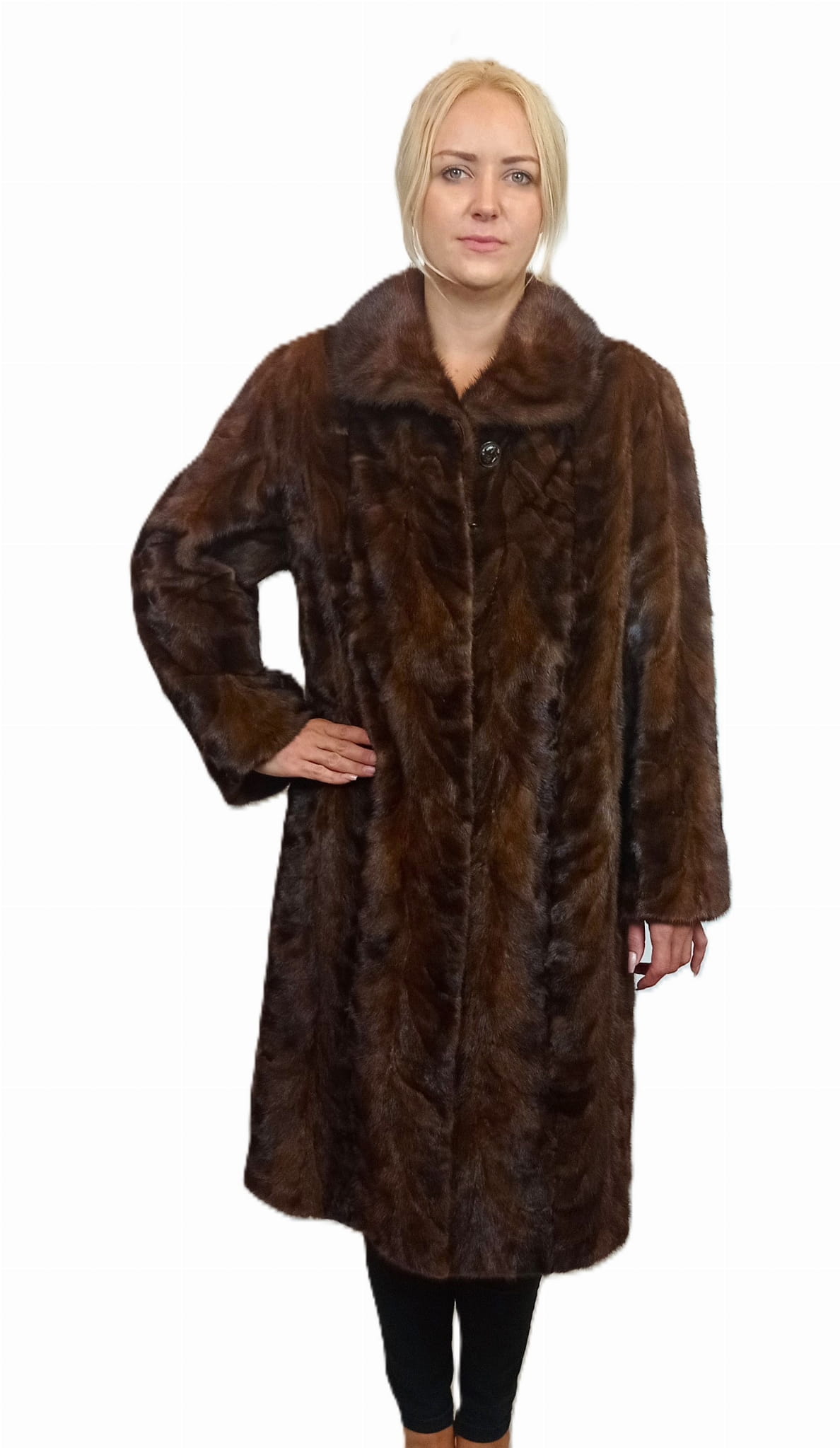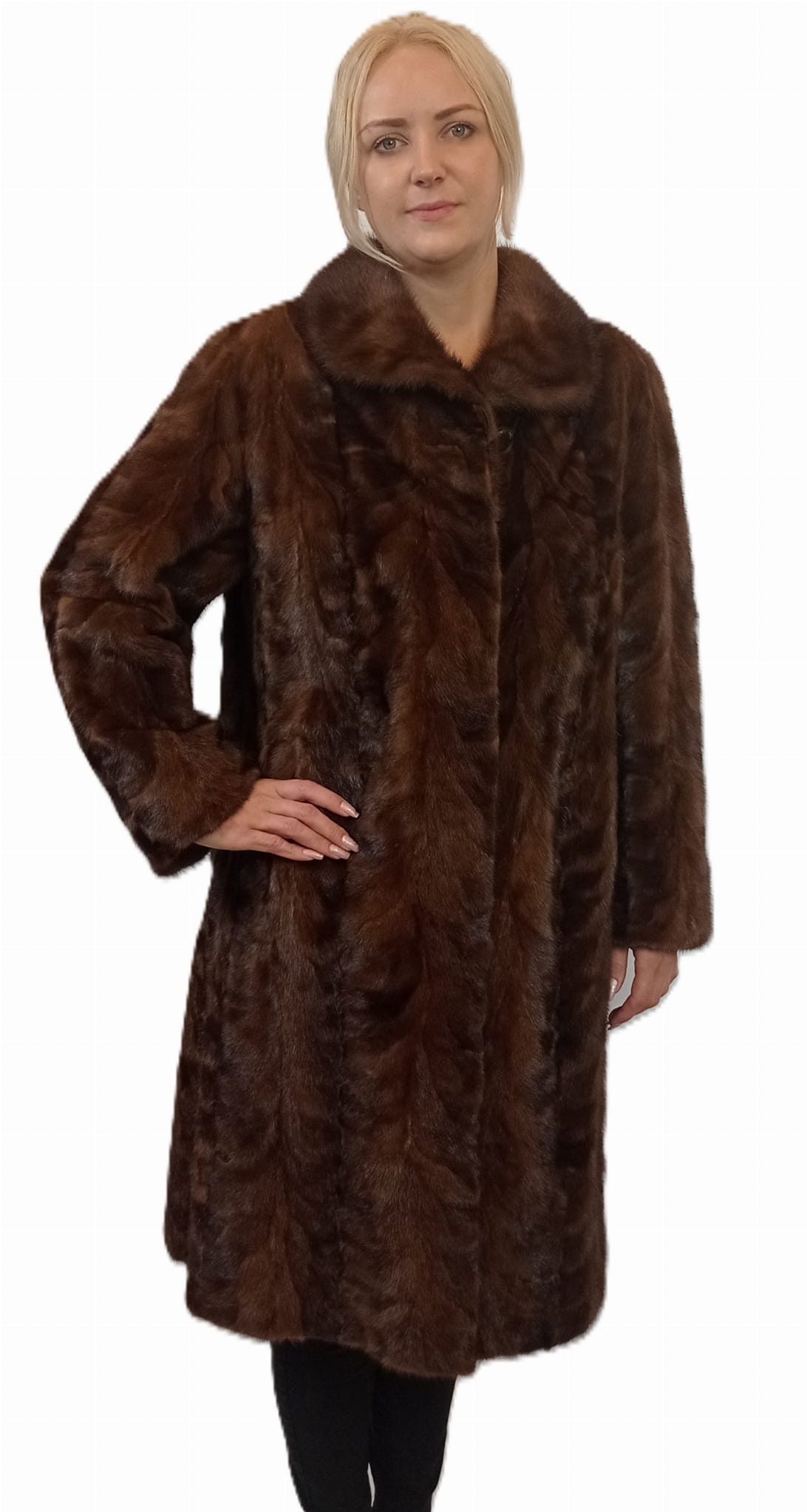 Ekskluzywna kurtka damska z naturalnego futra norek w eleganckim odcieniu czekoladowego brązu.