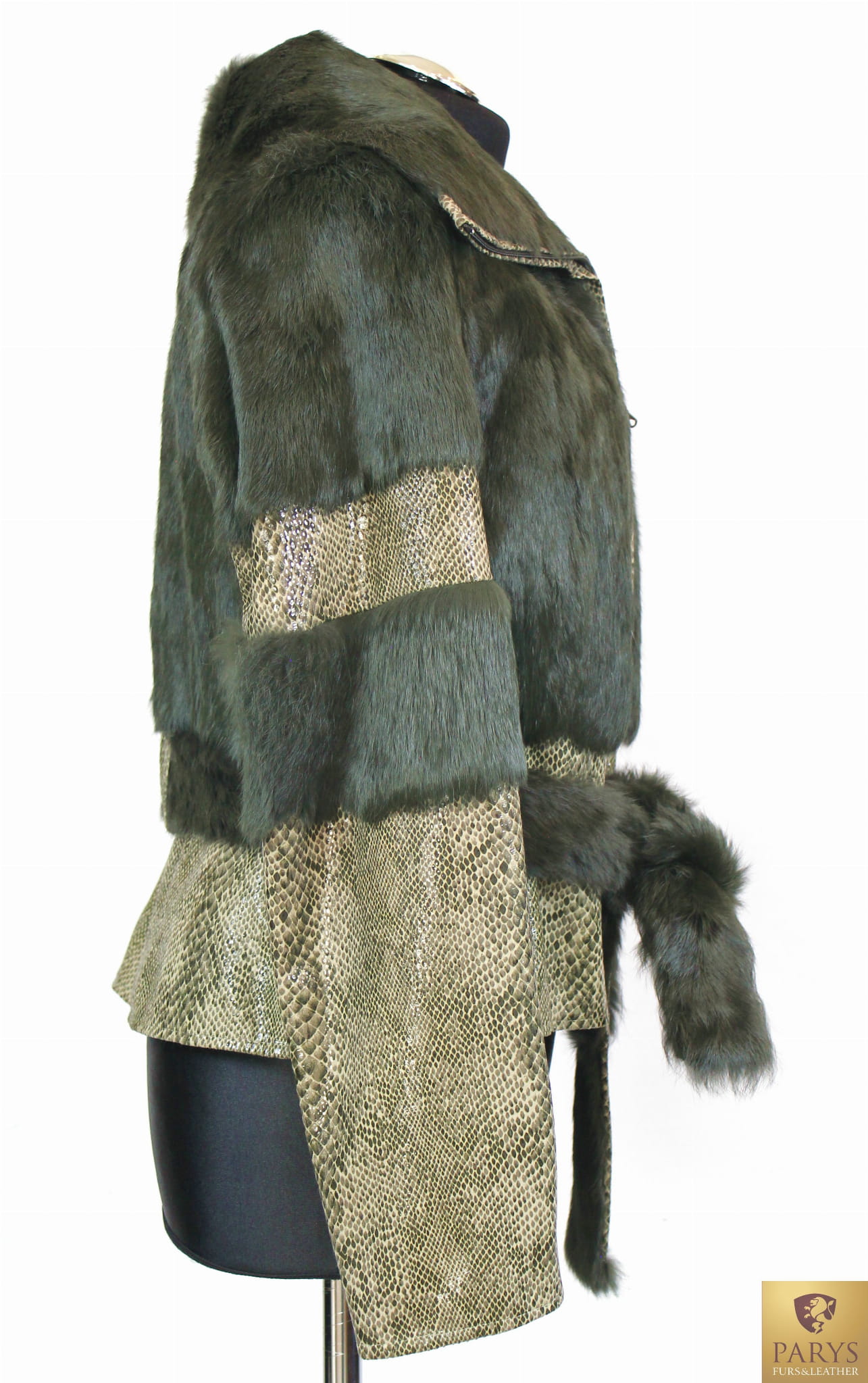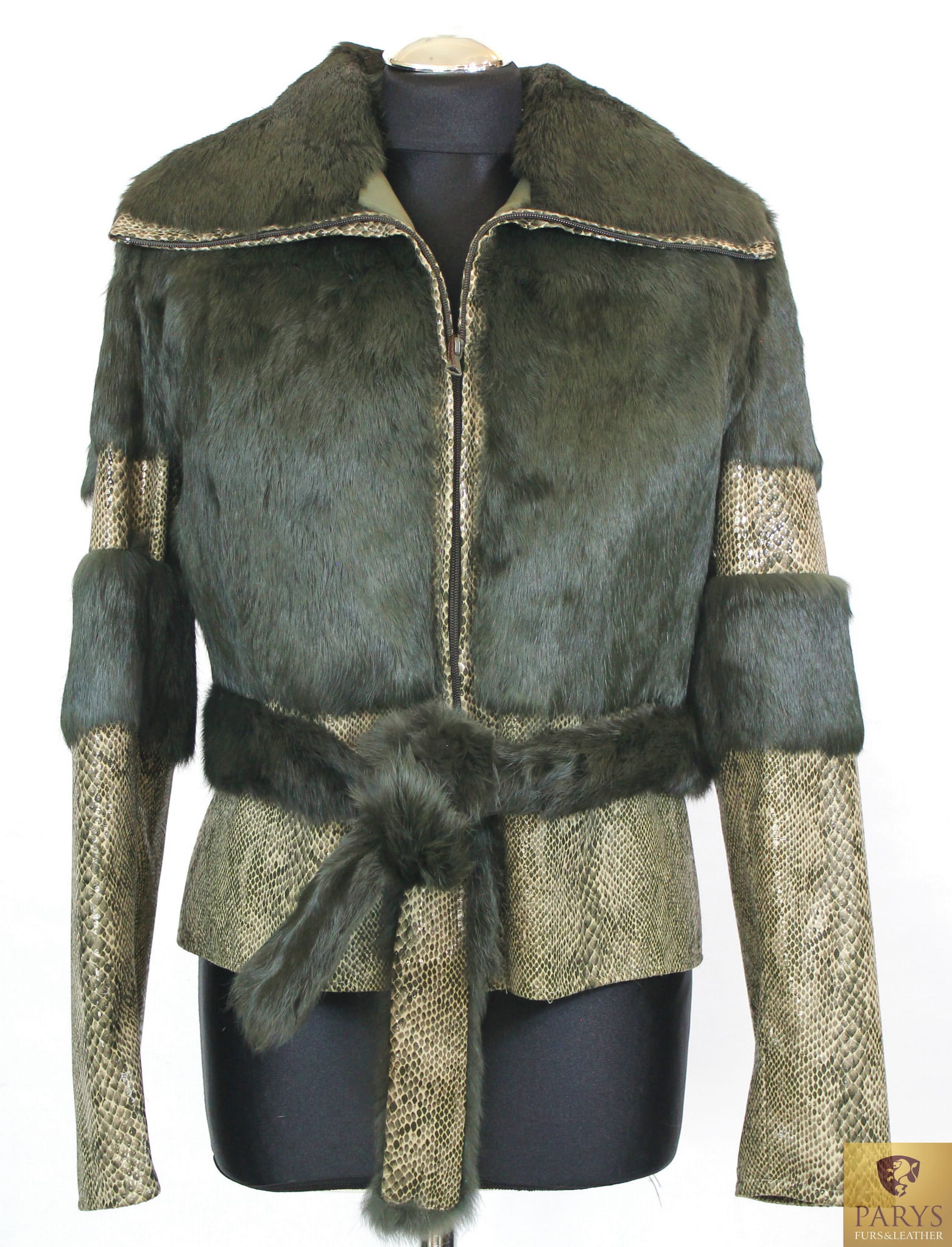 Do kurtki dołączony jest pasek ze skóry obszyty futerkiem , który umożliwia podkreślenie talii i nadanie sylwetce pożądanego kształtu.
