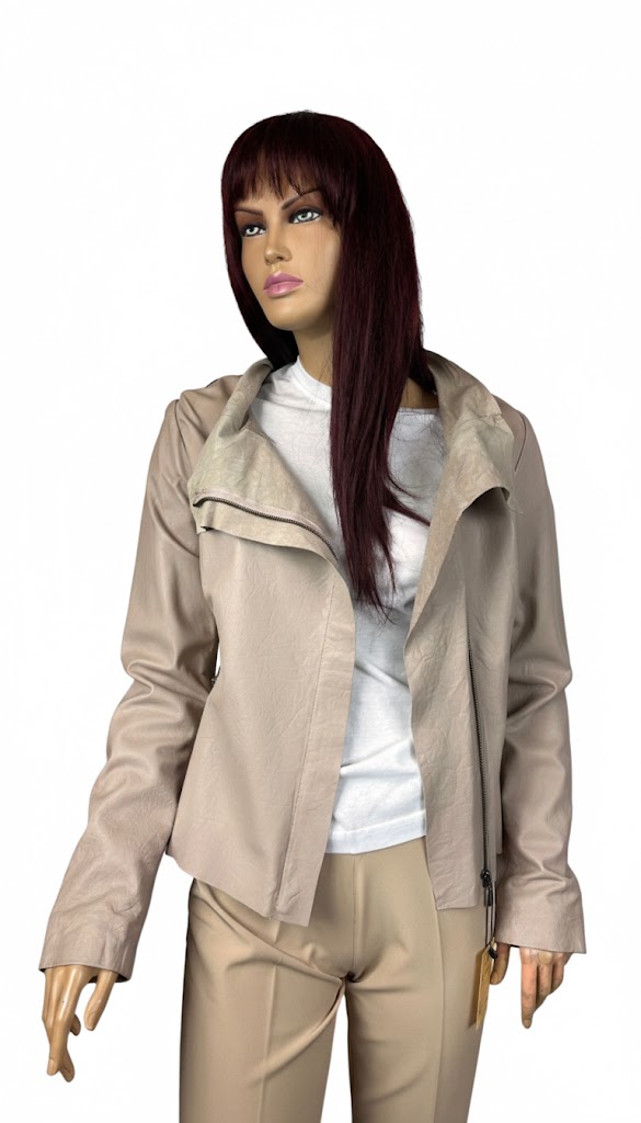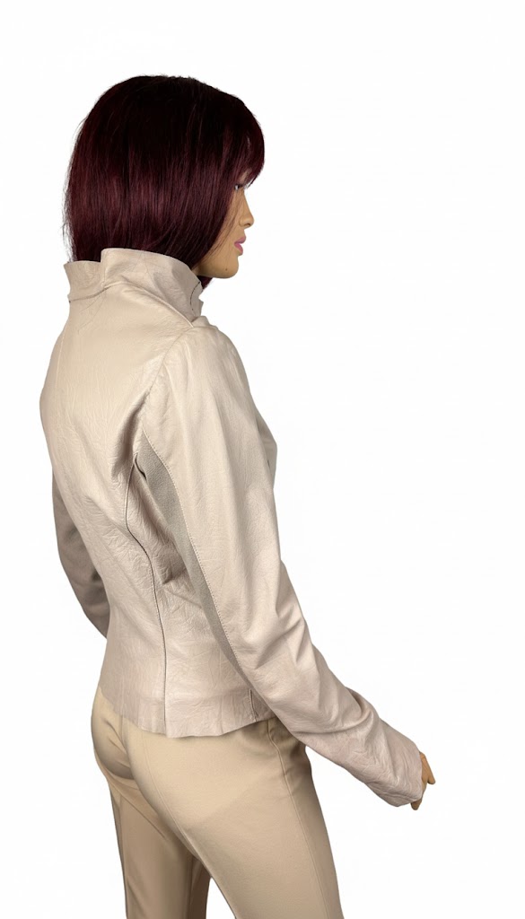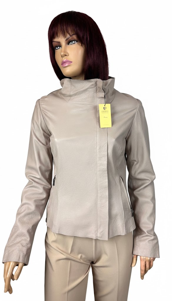 Kurtka skórzana „Lene” z surowym wykończeniem w kolorze Pearl Blush to wyjątkowa propozycja o subtelnym, kobiecym charakterze.