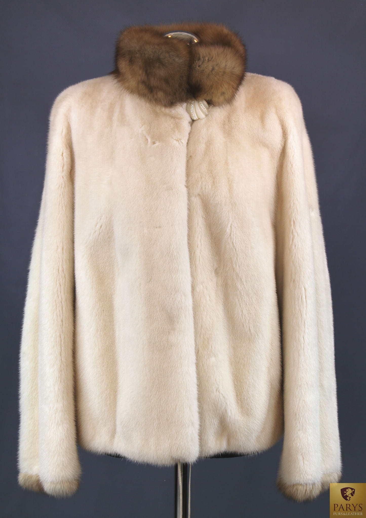 Kurtka damska z futra grzbietów norczych z kołnierzem z soboli
