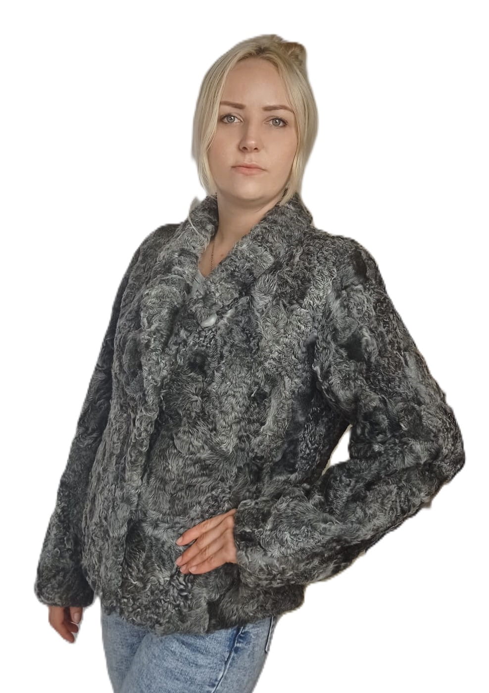 Elegancka, ciepła i wyjątkowa kurtka damska uszyta z wysokiej jakości naturalnego futra karakuł.