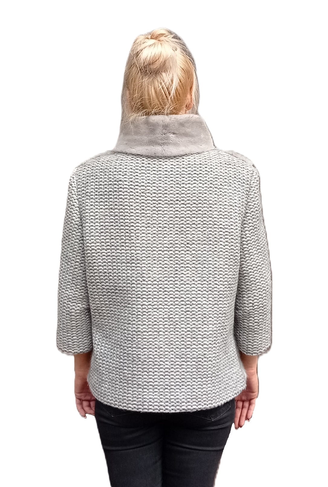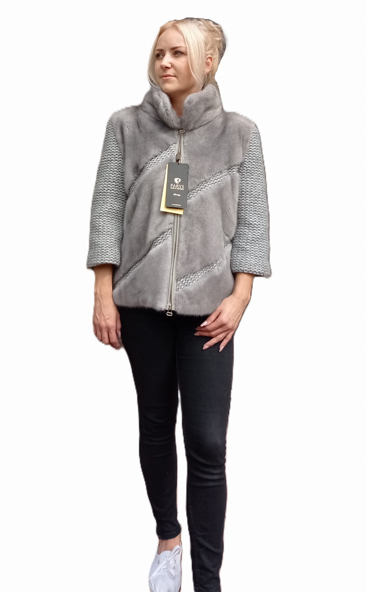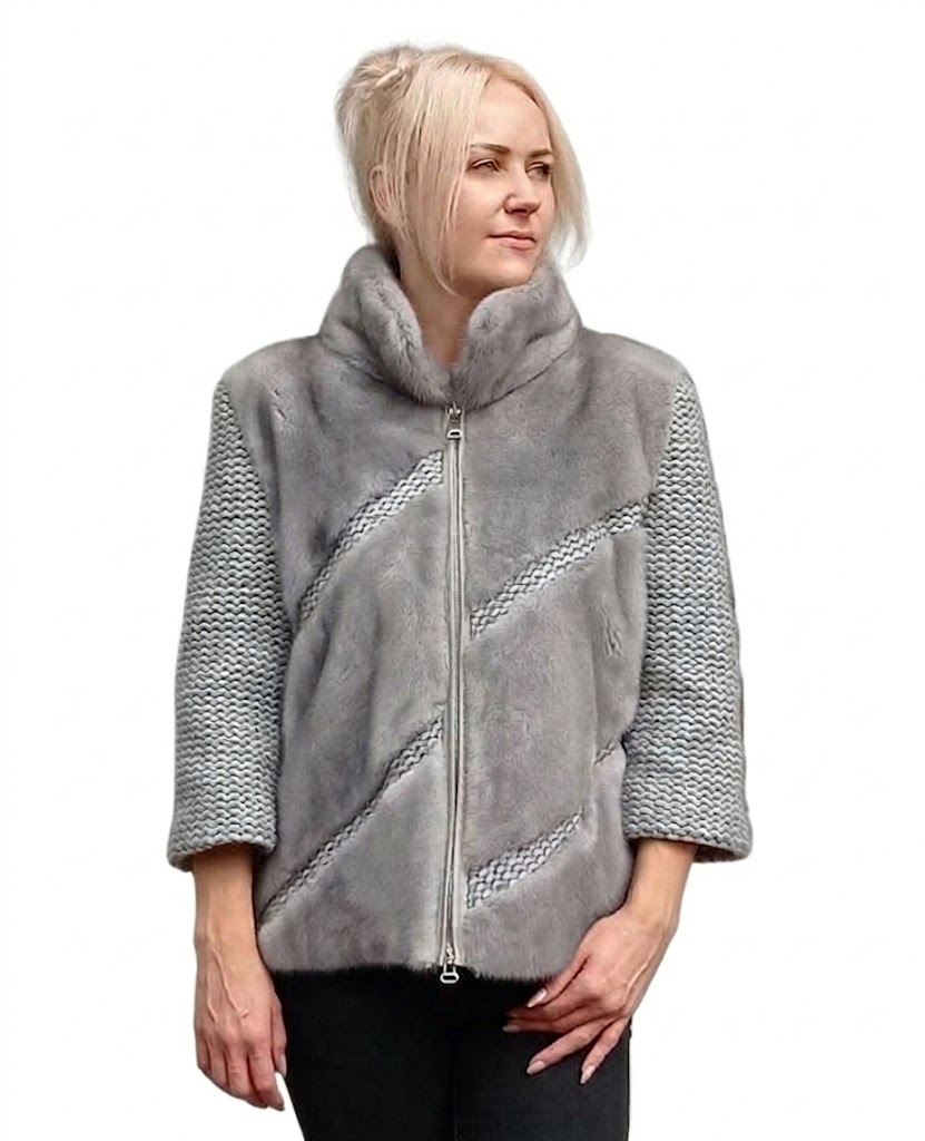 Stylowa kurtka z naturalnego futra norek i dzianiny – kolor szary