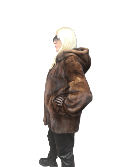 Piękna kurtka z grzbietów norczych mink male demi buff w kolorze brązowym.