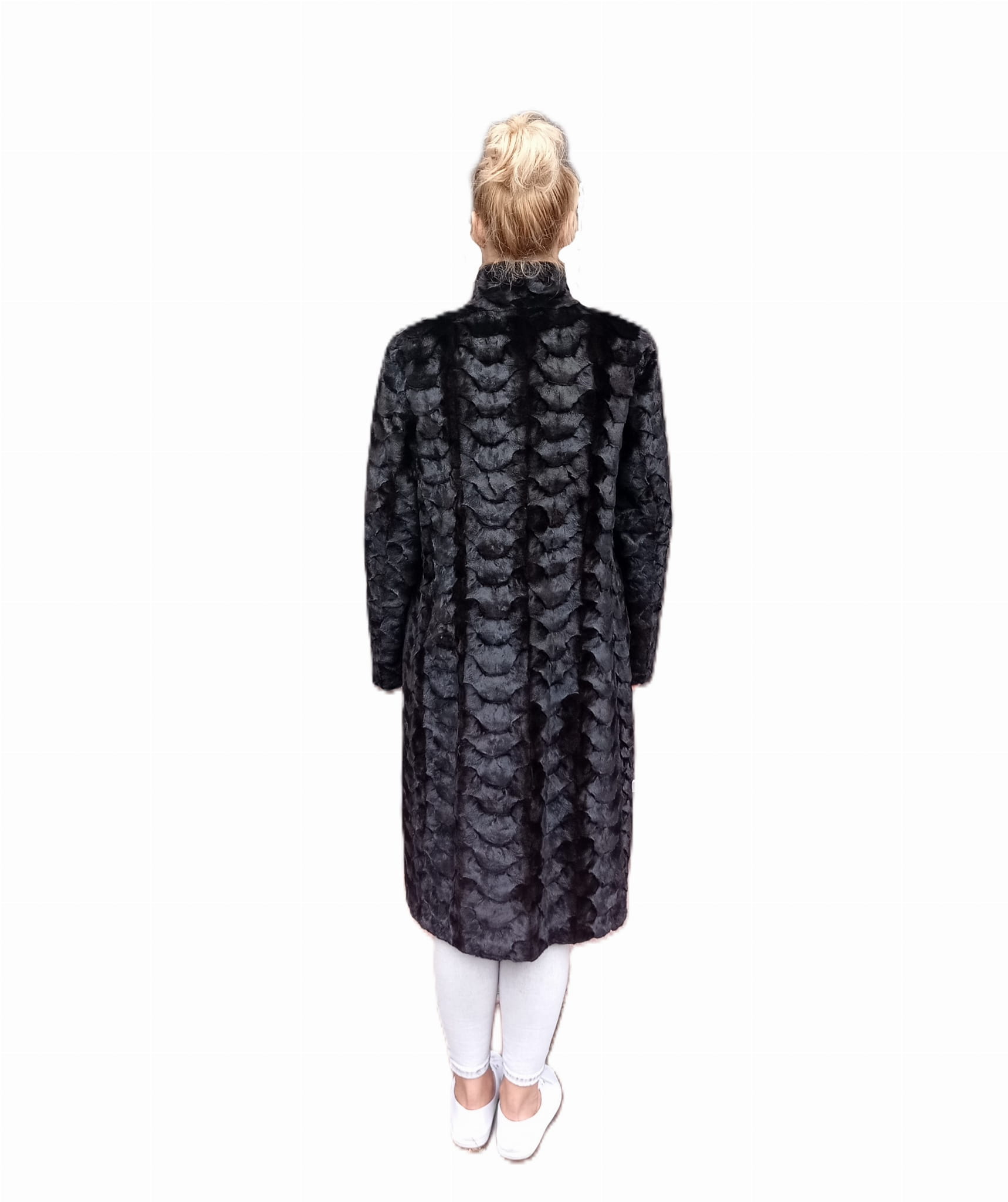 Całość wykończona jest delikatną, ozdobną podszewką, która nadaje futru luksusowego wykończenia.