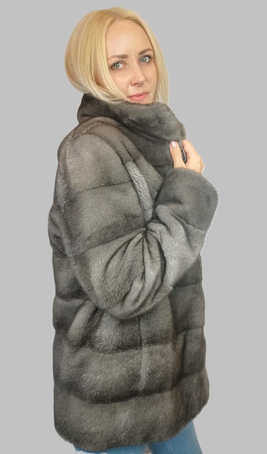 Futro Mink Male Blue świetnie sprawdzi się zarówno w codziennych stylizacjach, jak i w duecie z botkami czy kozakami na wieczorne wyjścia.