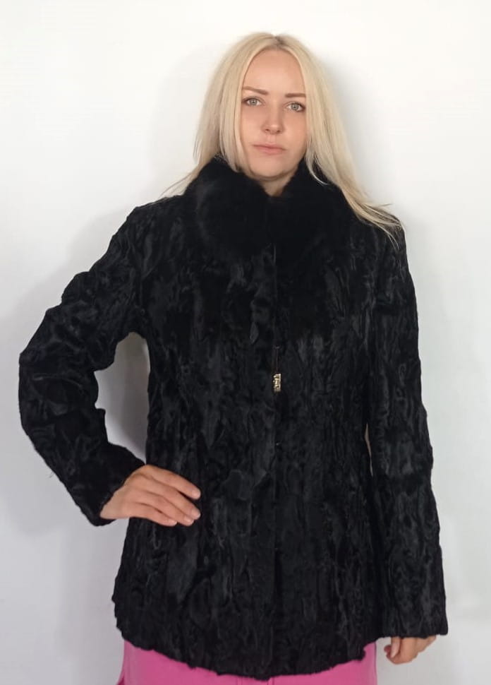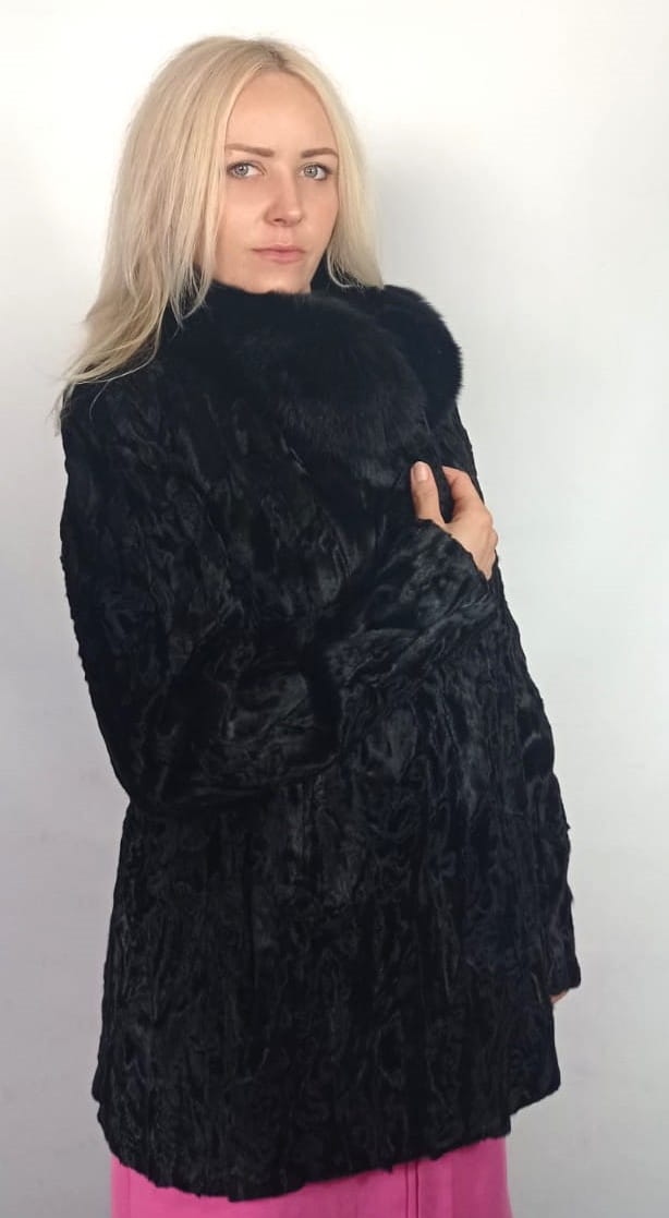 Kurtka naturalne futro z karakuł Hilda, kołnierz z lisa.