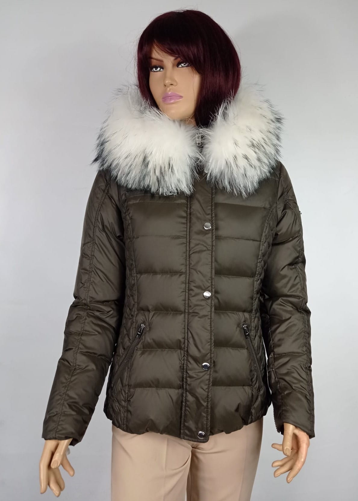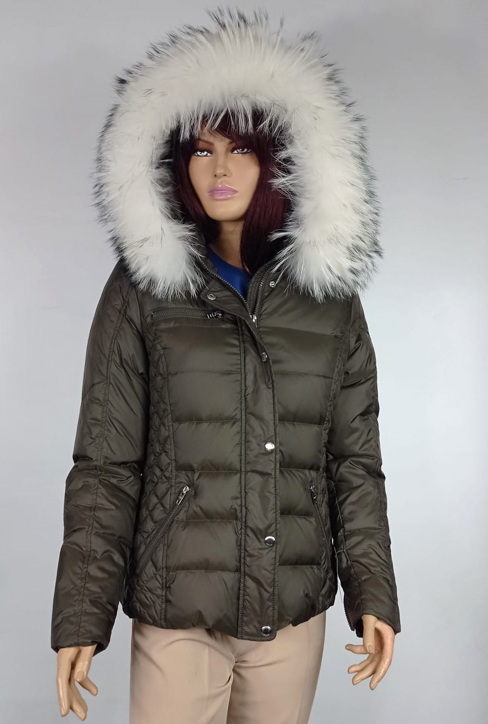 Kurtka puchowa z kapturem obszytym sztucznym futerkiem – Model Zora