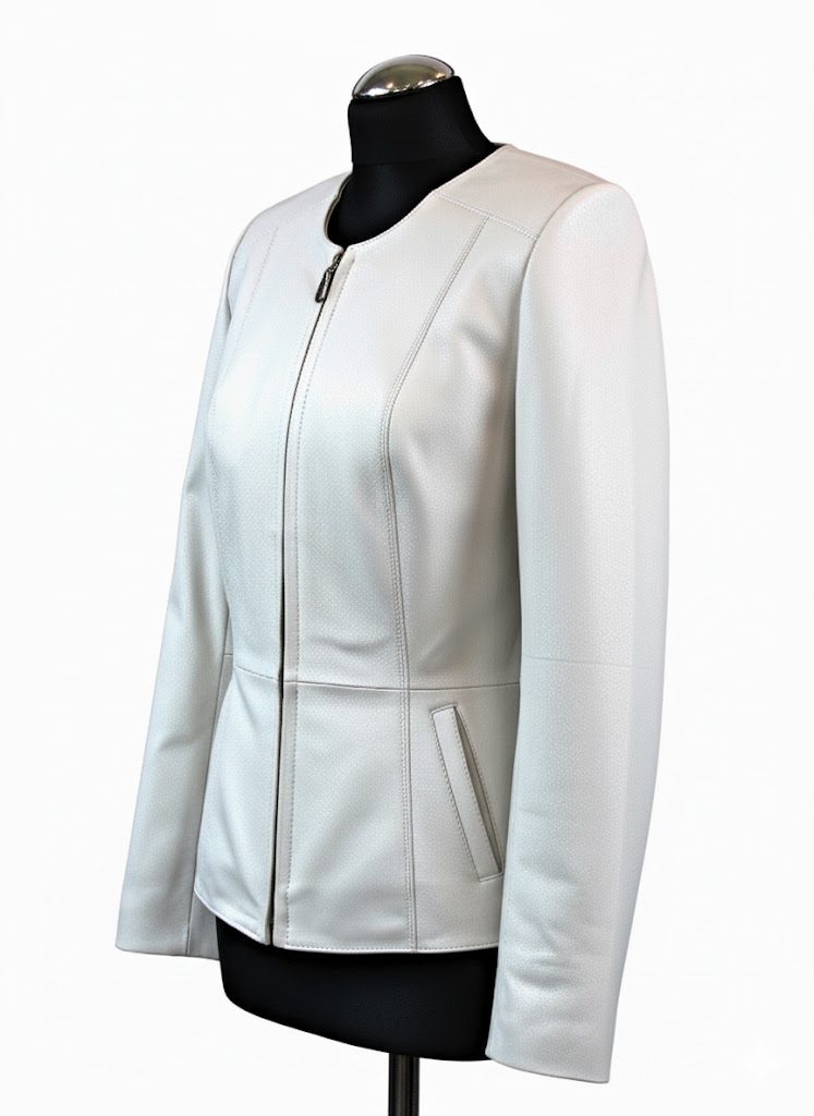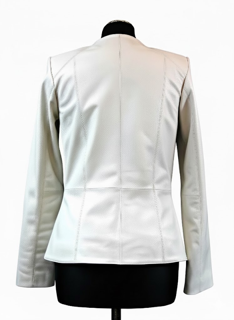 Kurtka skórzana „Dominika” wykonana z wysokiej jakości skóry licowej w kolorze białym to elegancka i ponadczasowa propozycja.