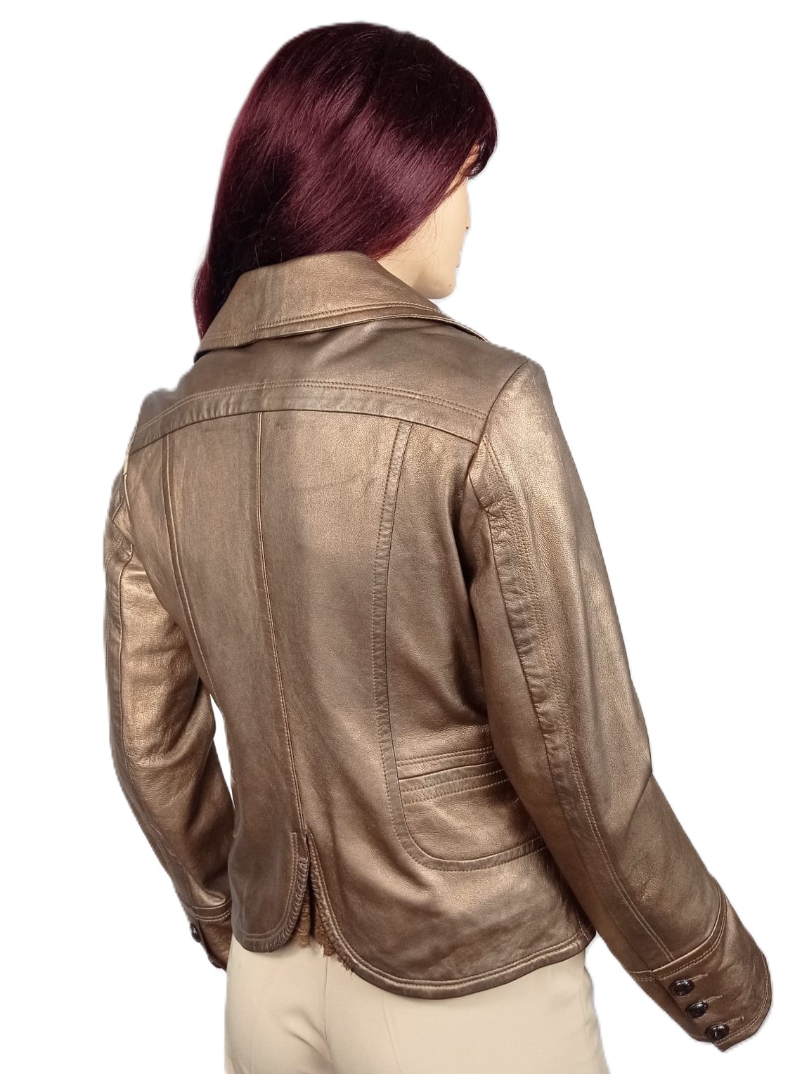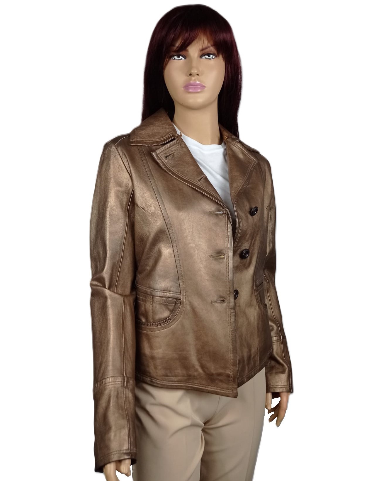 Elegancka kurtka damska wykonana z wysokiej jakości skóry naturalnej w wyjątkowym kolorze starego złota.