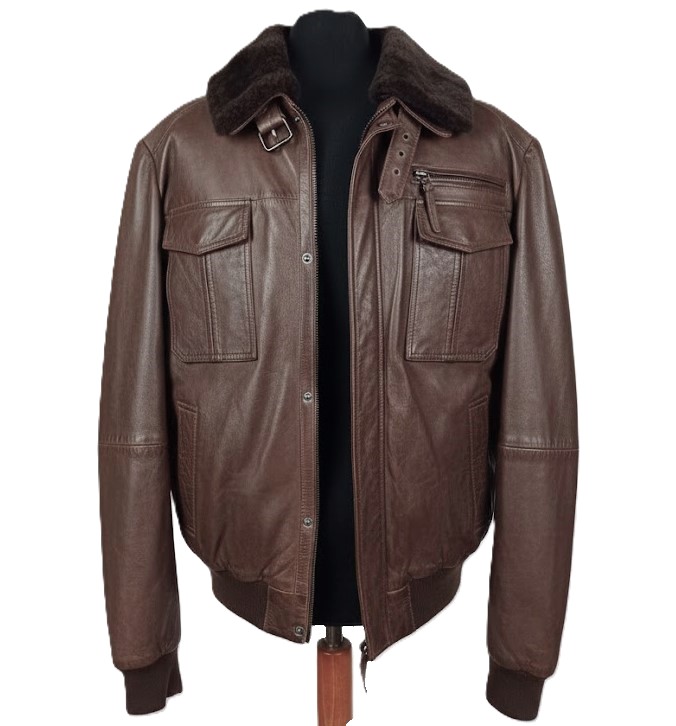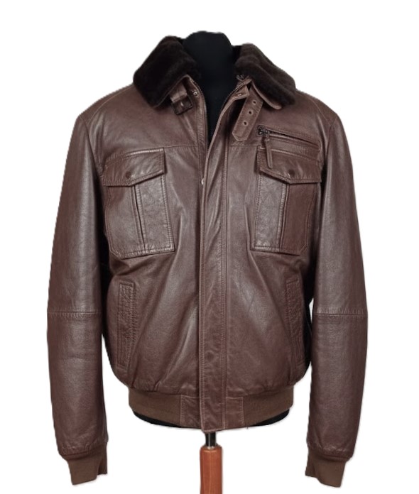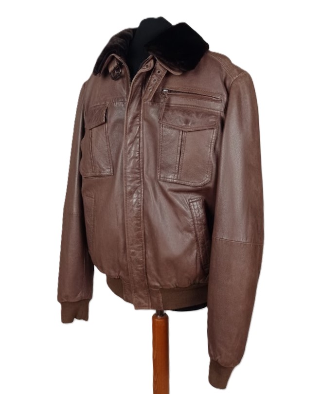 Kurtka męska pilotka, wykonana z wysokogatunkowej skóry naturalnej z odpinanym futrzanym kołnierzem.
