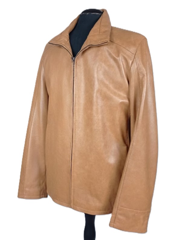 Kurtka skórzana w odcieniu jasnego karmelu - Model Maciek