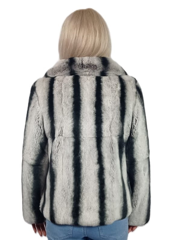 Stylowa kurtka damska z naturalnego futra Rex - kolor Chinchilla