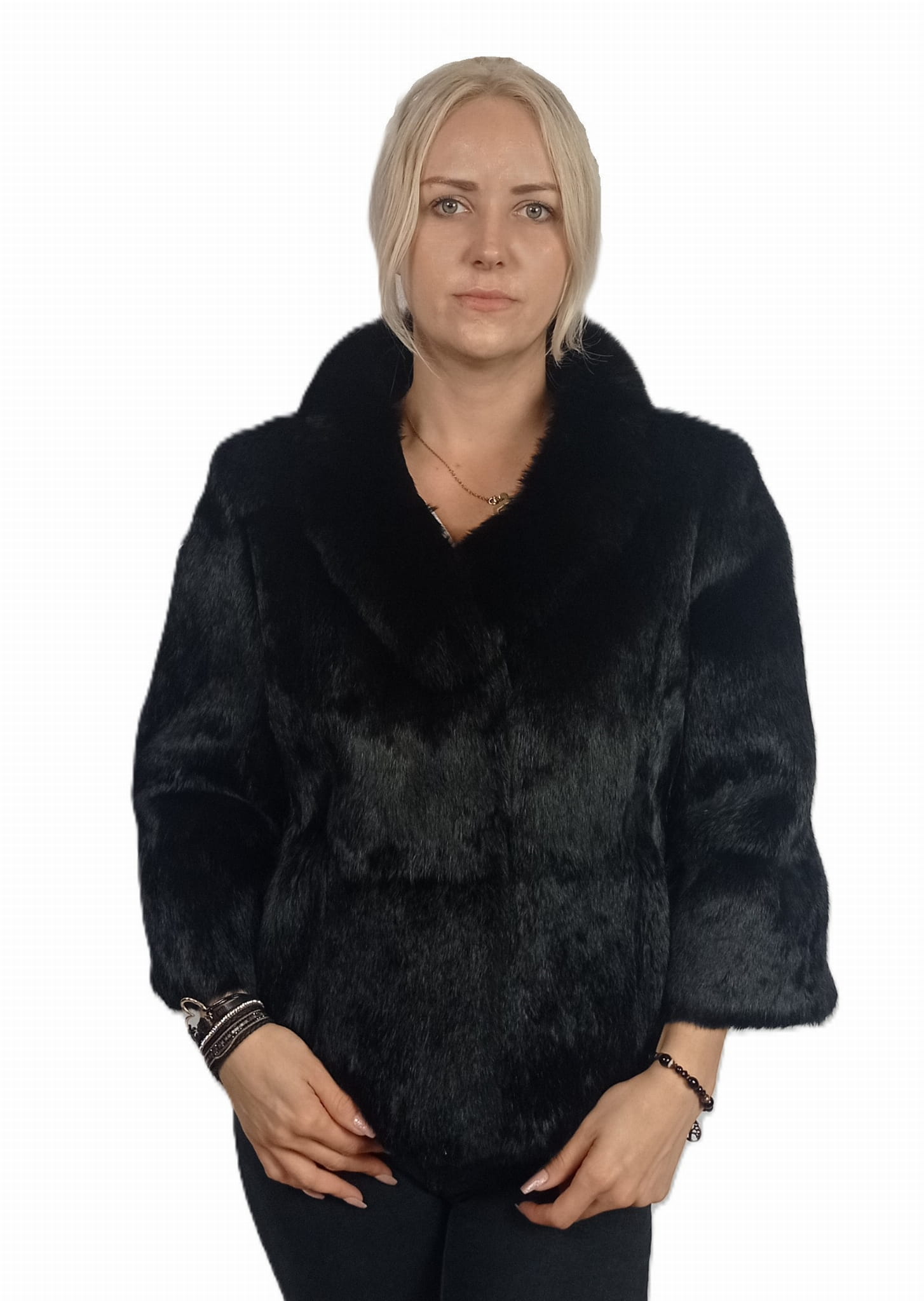 Ekskluzywna kurtka damska z naturalnego futra królika z kołnierzem z lisa – model Luisa
