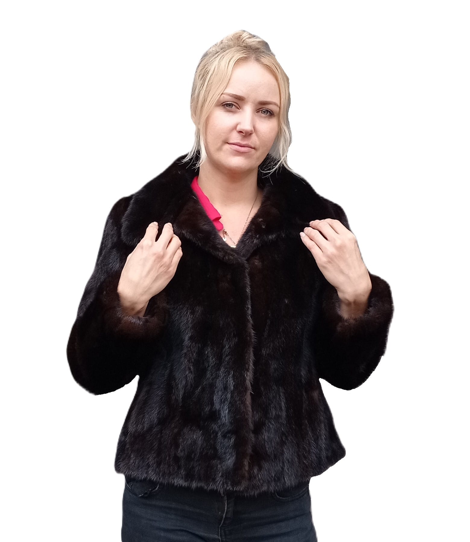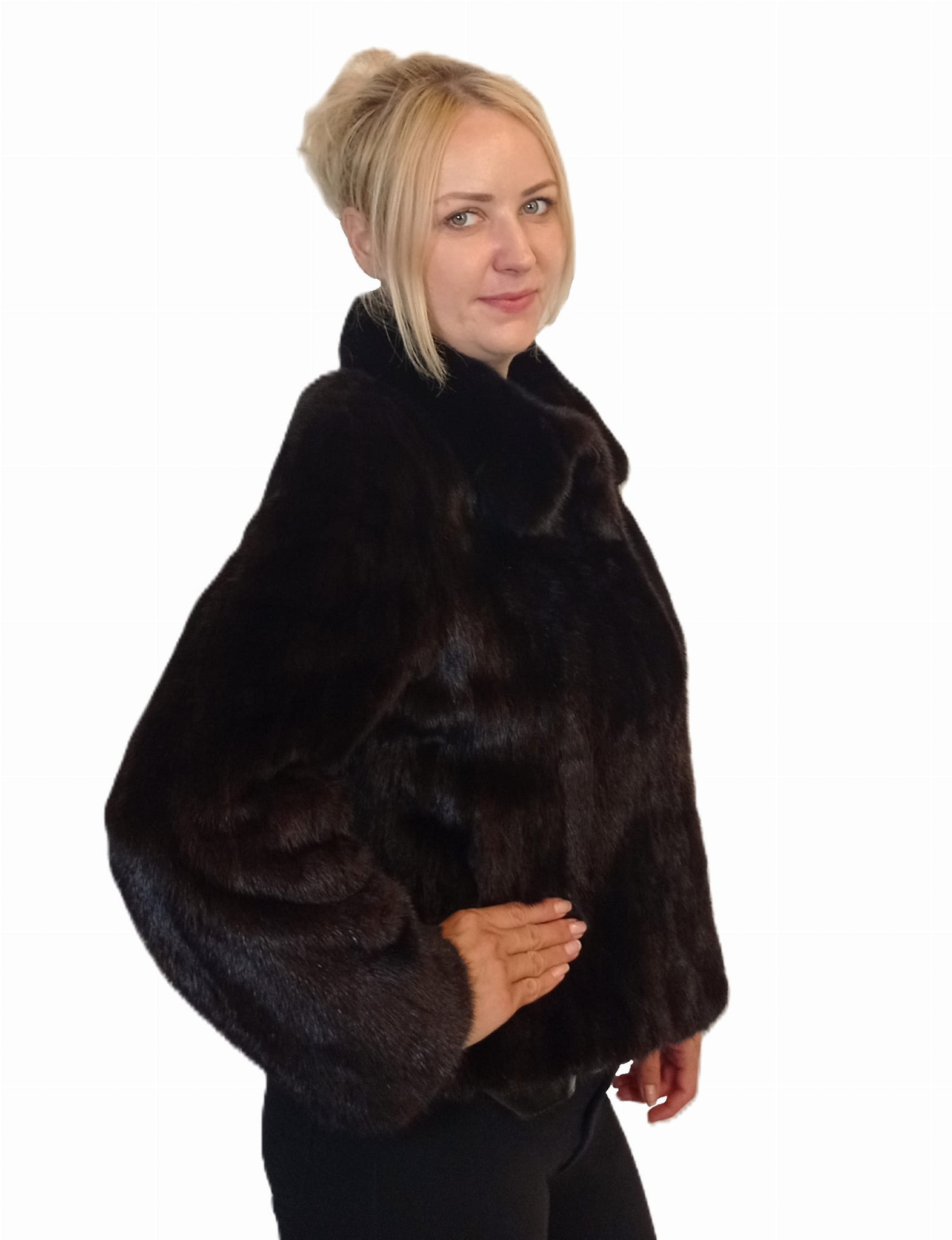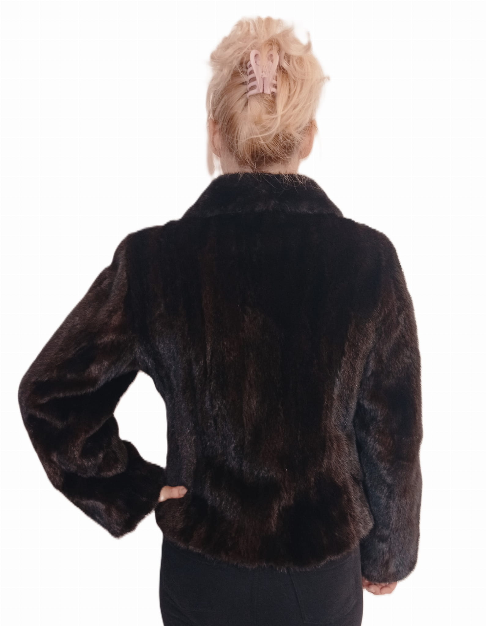 Luksusowa krótka kurtka z naturalnego futra norek – głęboki ciemny brąz