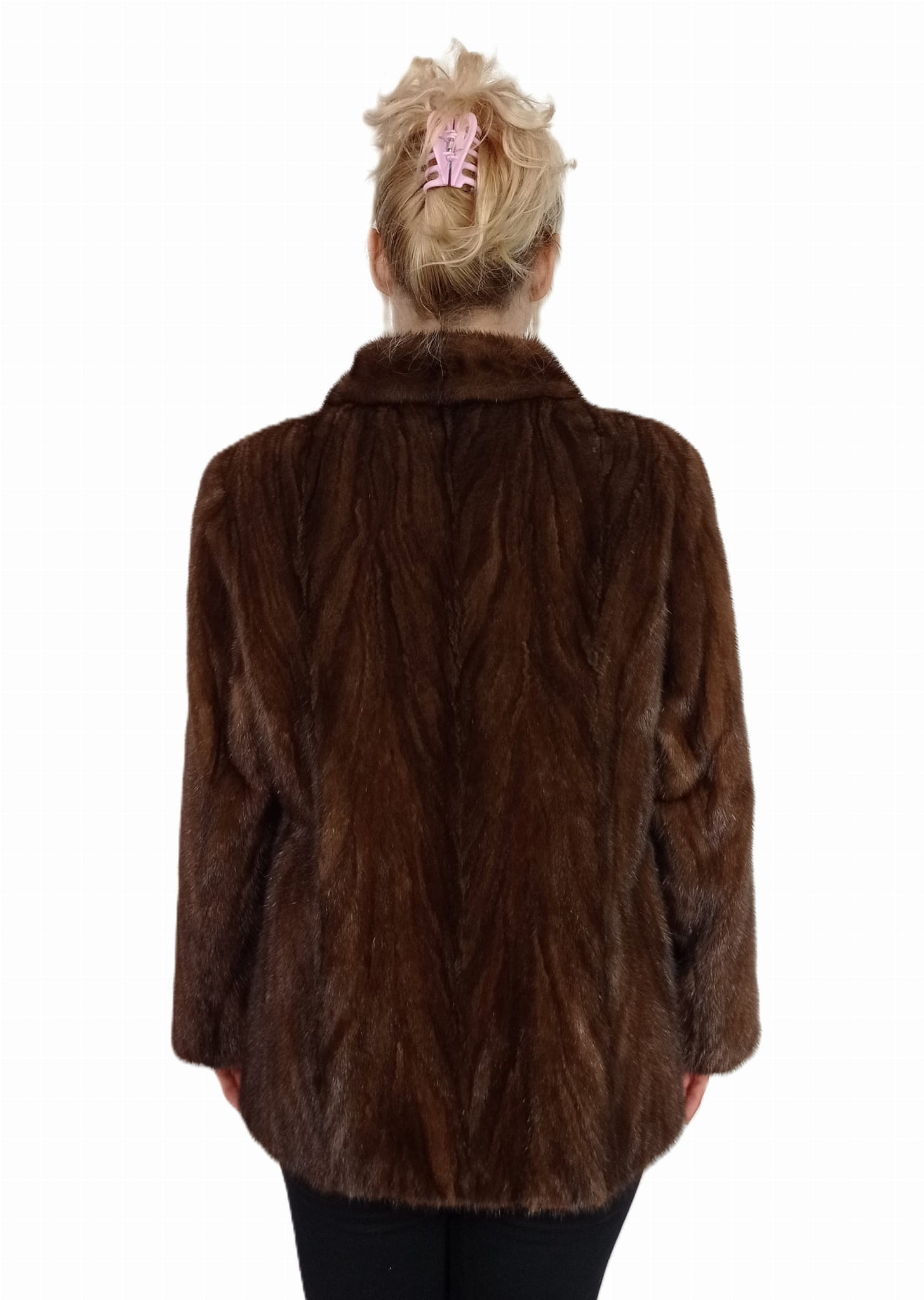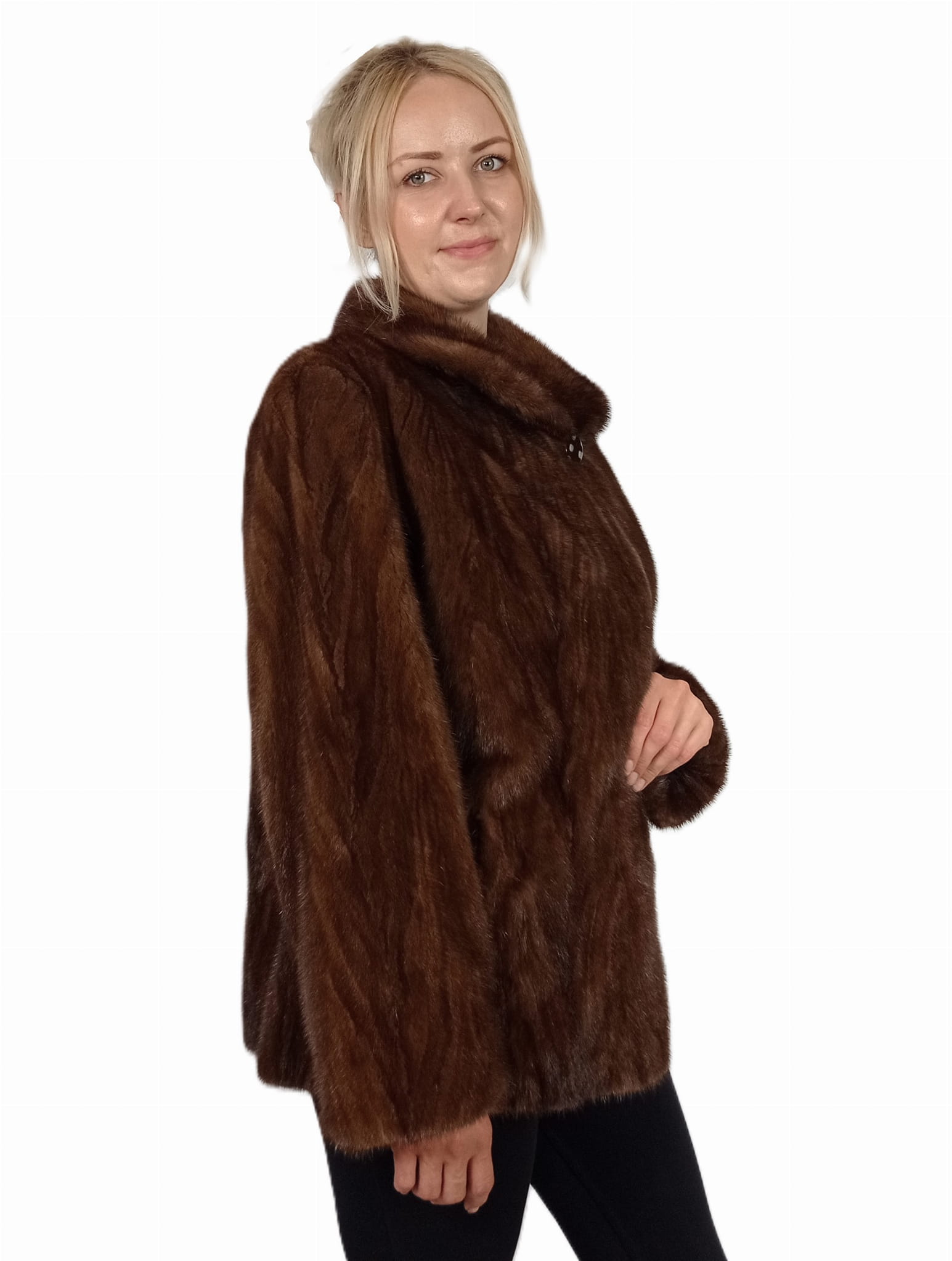 Kurtka damska z naturalnego futra norek – klasyczny fason, brąz.