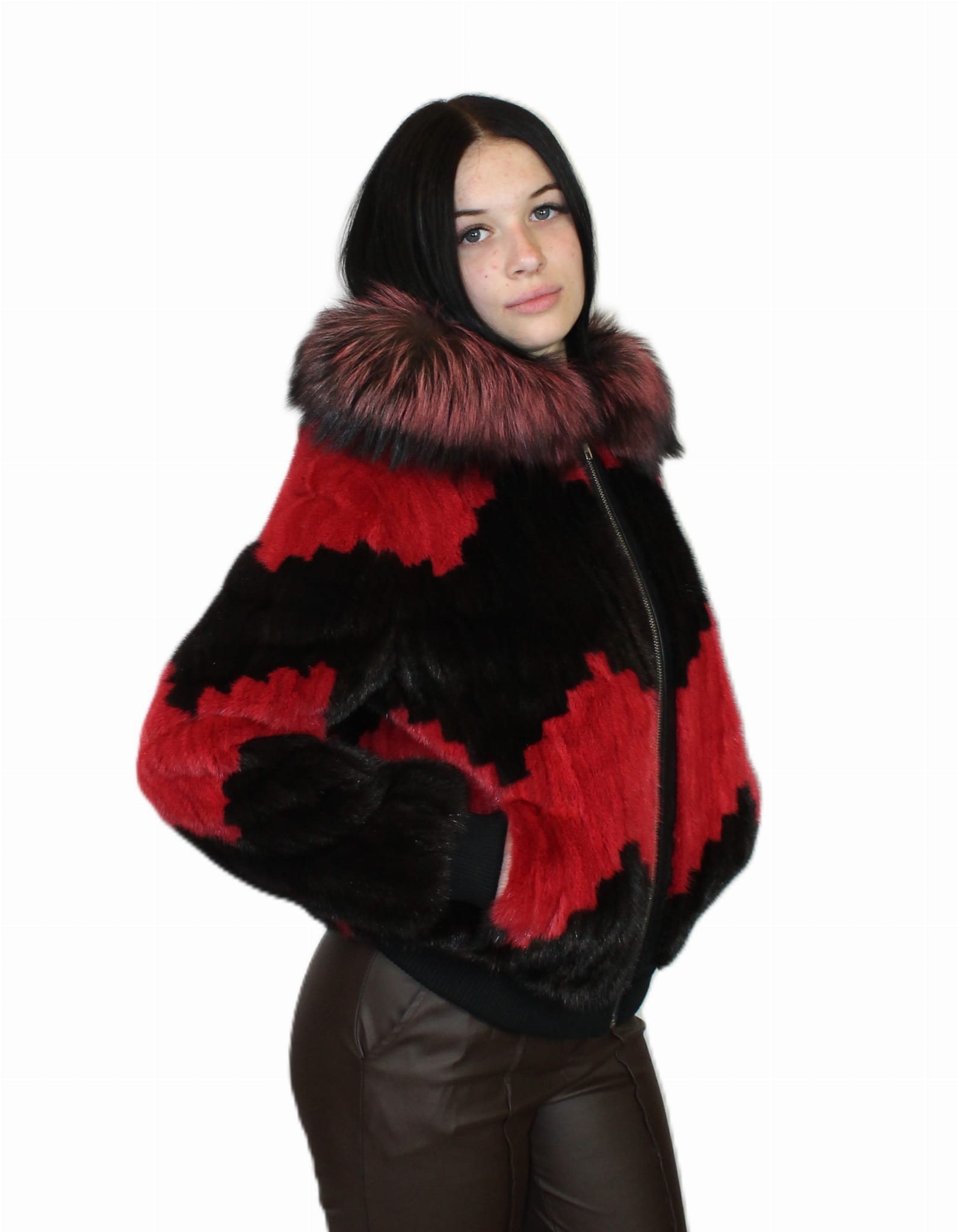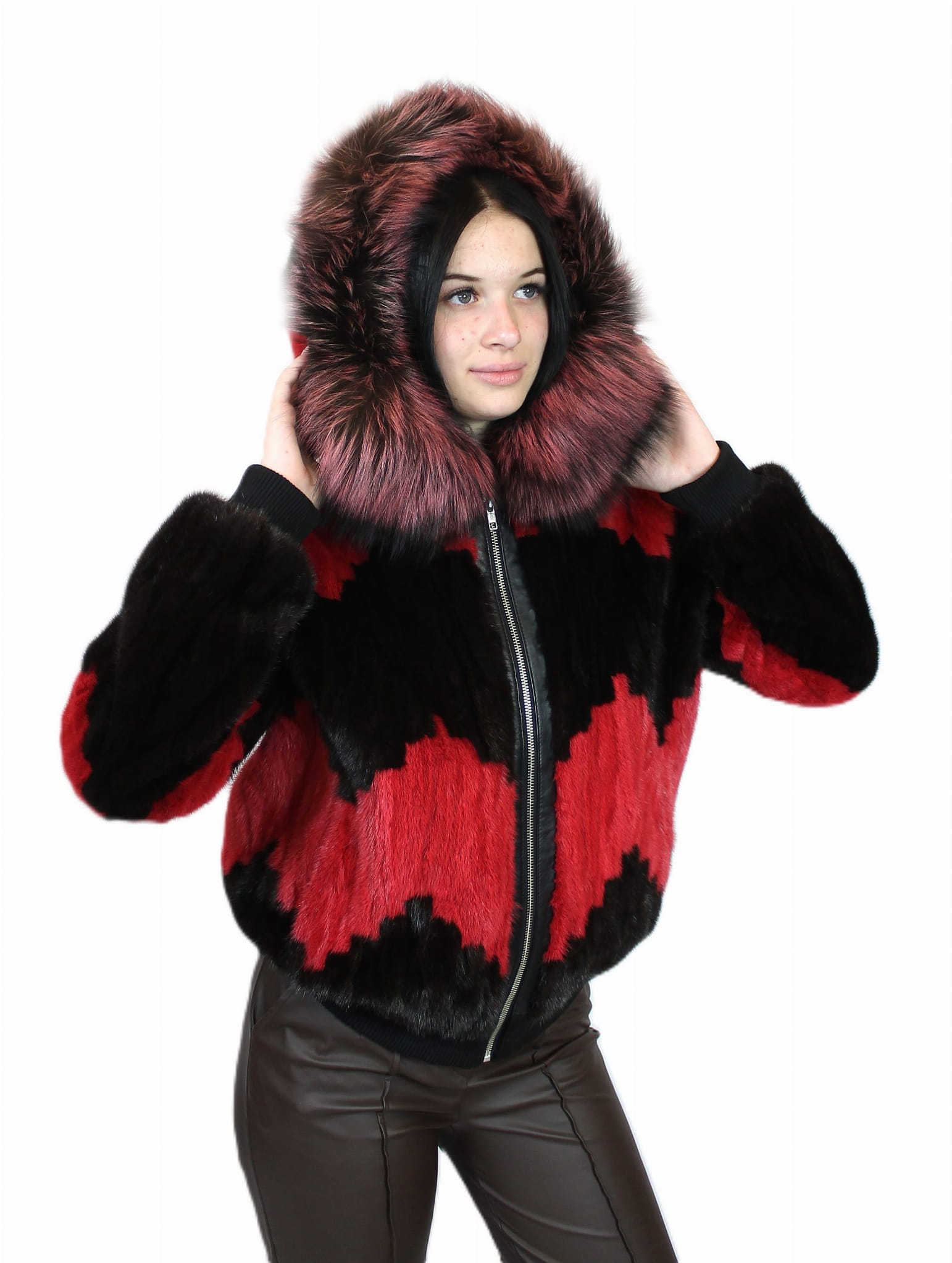 Kurtka z kapturem wykonana z naturalnego futra grzbietów norczych to elegancka i praktyczna propozycja na chłodniejsze dni.