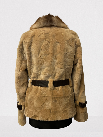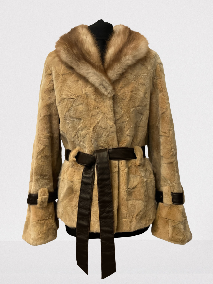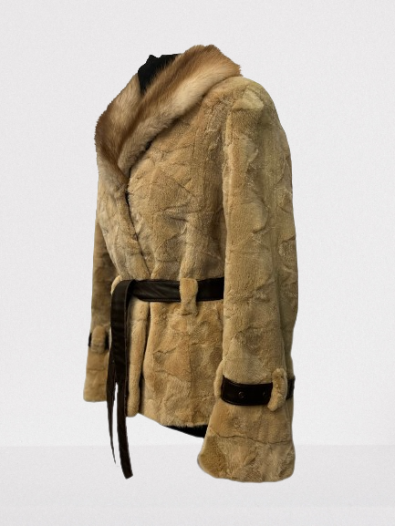 Letnia wyprzedaż ! Kurtka-futro z norek- kołnierz z futra lisa-skórzany pasek.