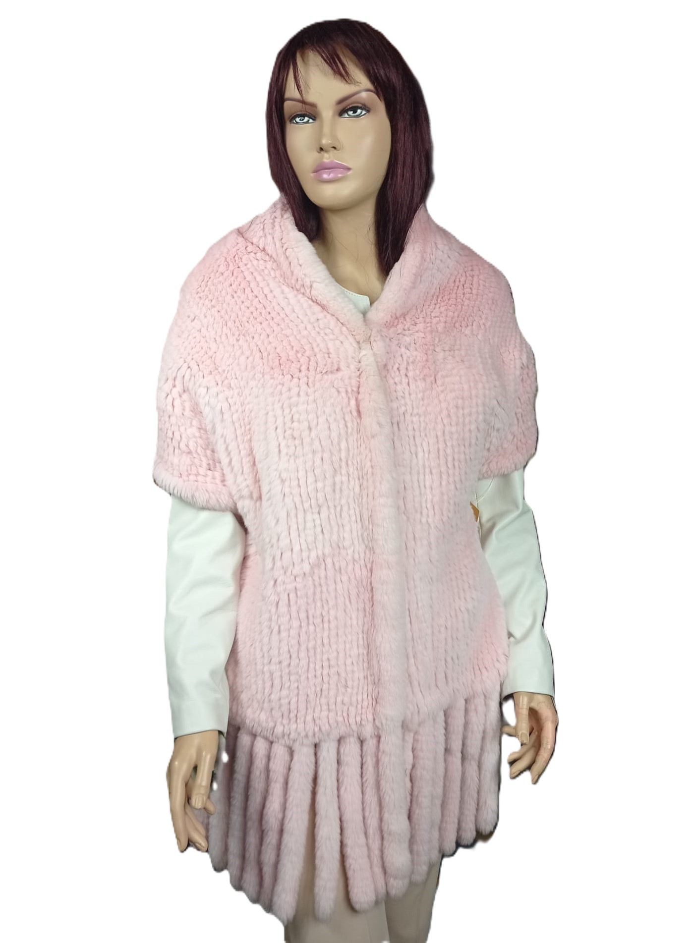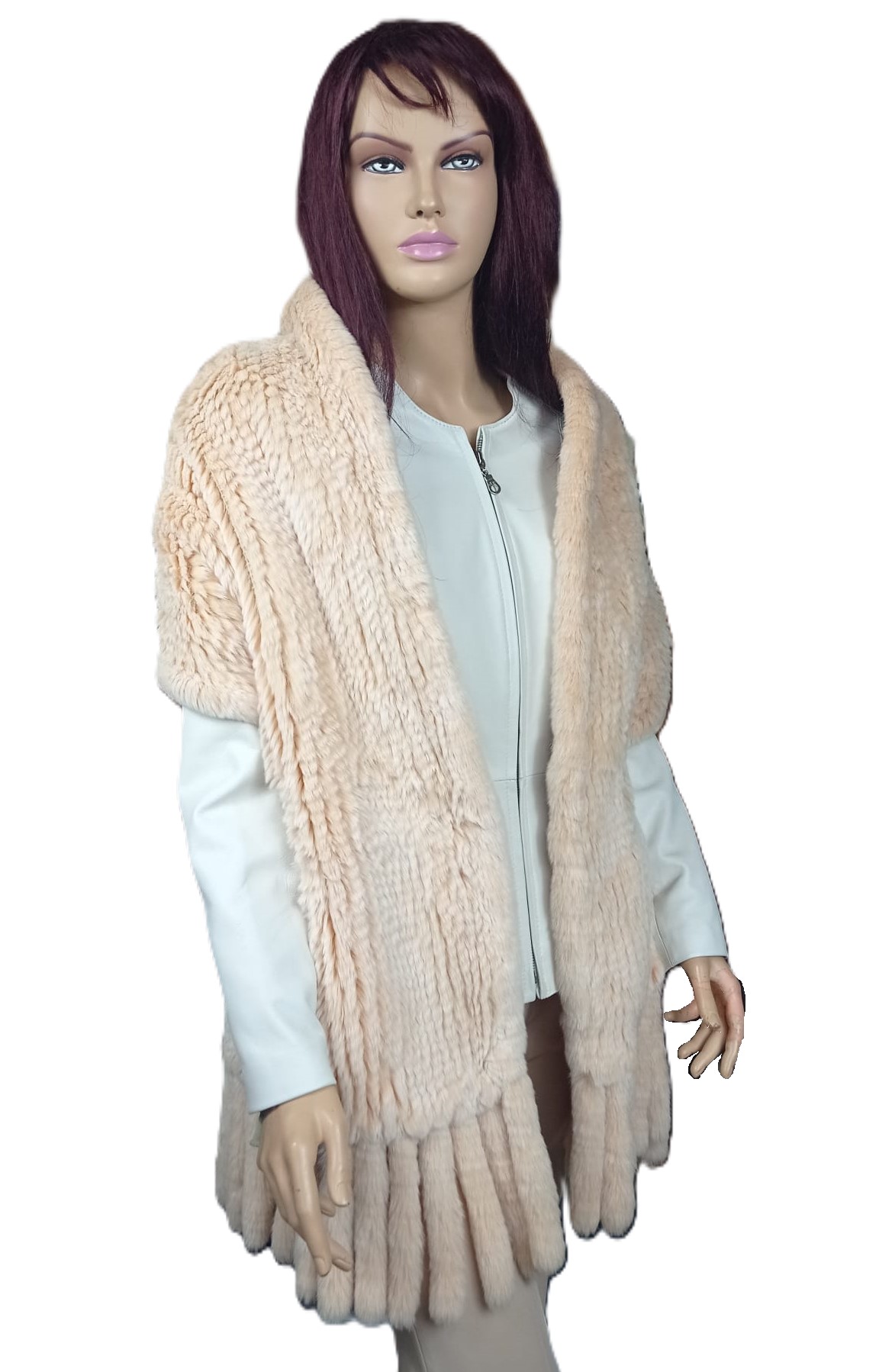 Luksusowy Szal z Futra Królika REX Pleciony z Frędzlami – klory
