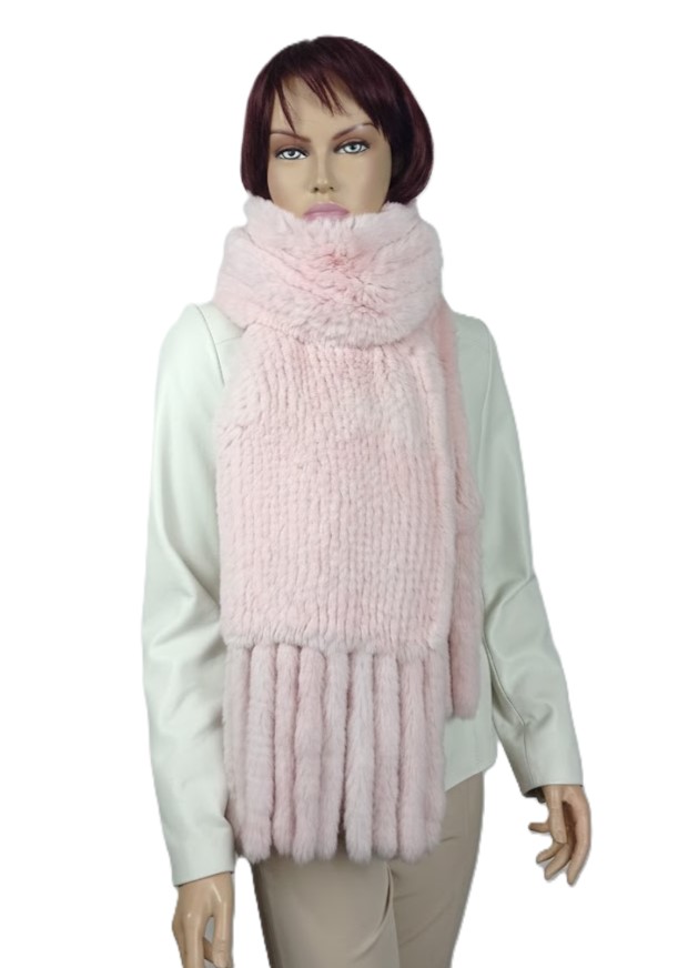 Szal pleciony z naturalnego futra królika REX.