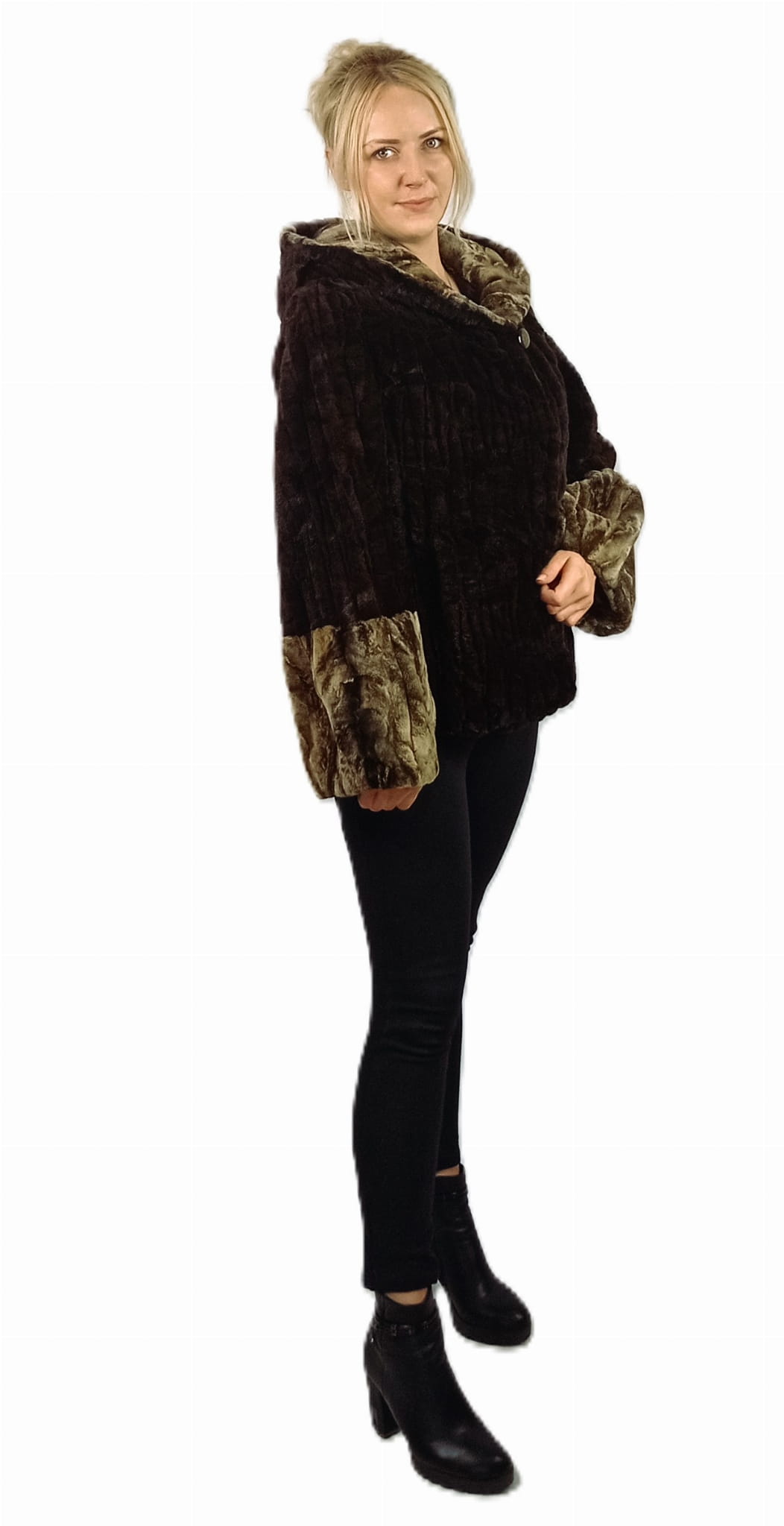 Szczególną uwagę przyciągają efektowne rękawy oraz wewnętrznie zdobiony kaptur.
