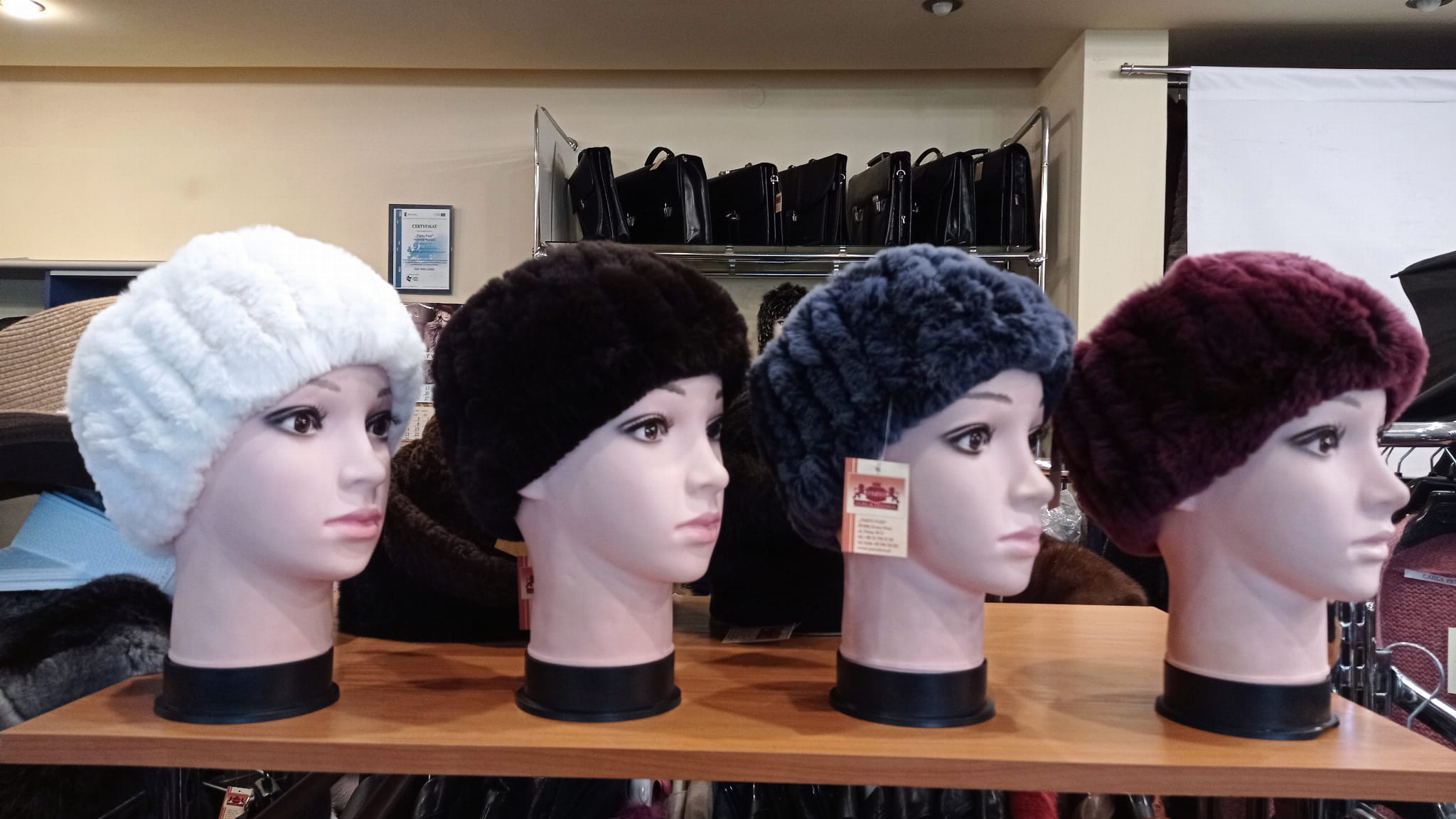 Dostępne kolory to czarny, brązowy, niebiesko-czarny, biały, rubin, biało- brązowy, brąz kawa z mlekiem.