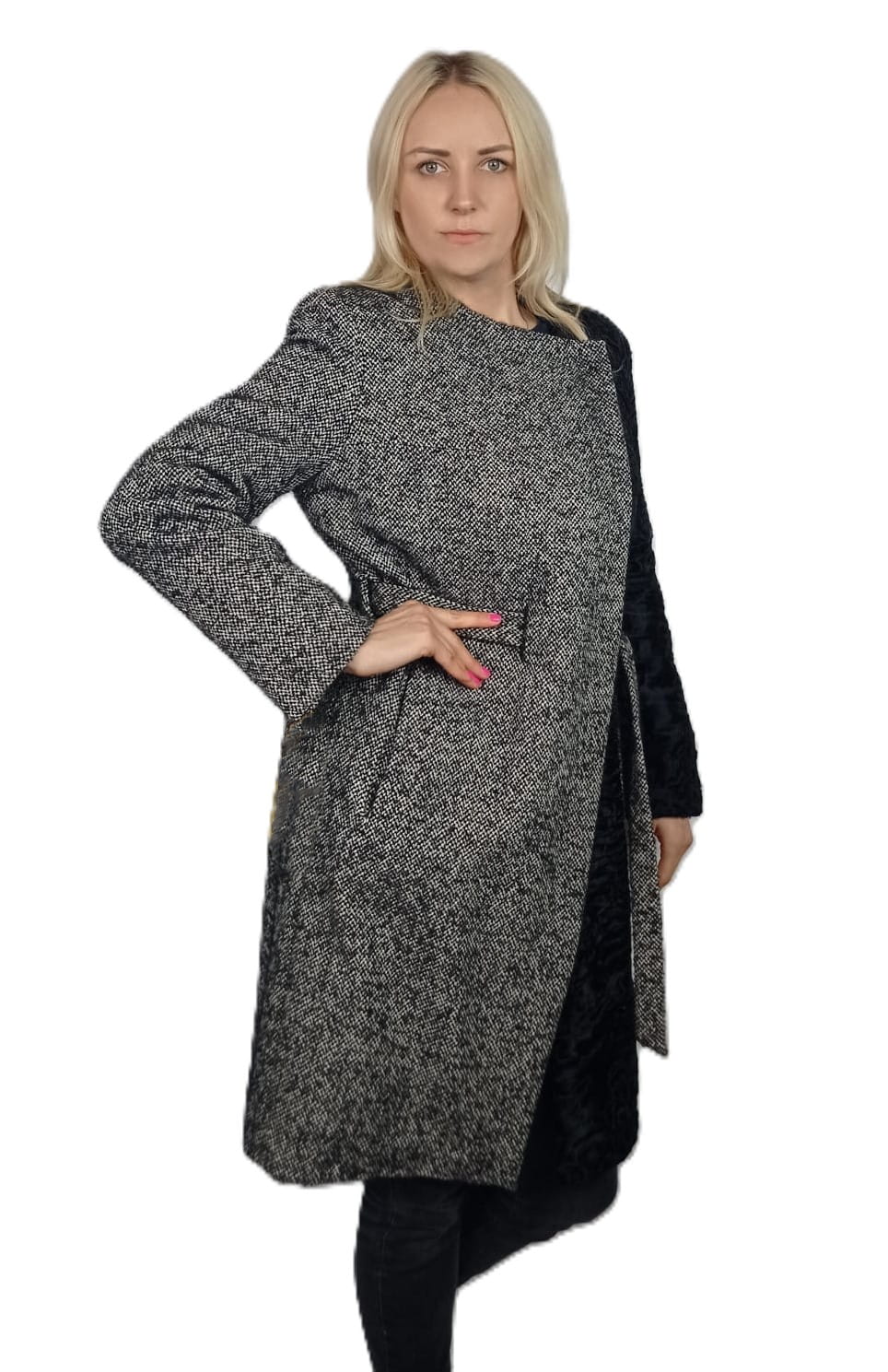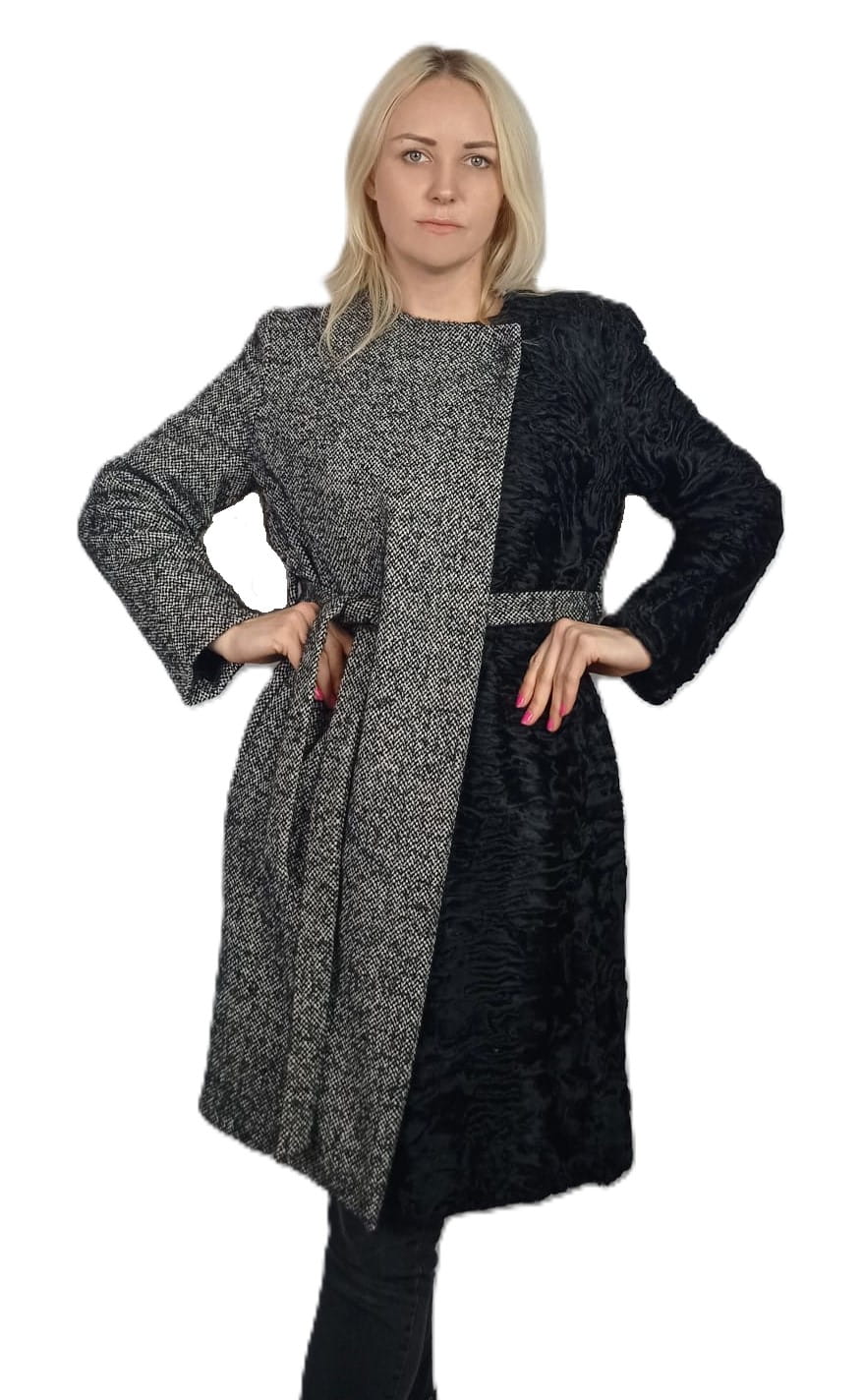Damski płaszcz dwukolorowy z naturalnego futra swakara + materiał