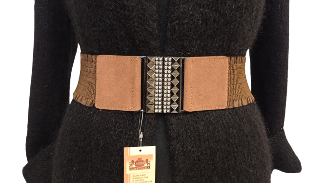 Stylowy i kobiecy pasek wykonany z wysokiej jakości materiału syntetycznego. Ozdobna klamra z połyskującymi cyrkoniami dodaje elegancji i przyciąga wzrok. Dzięki elastycznej strukturze pasek doskonale dopasowuje się do sylwetki, zapewniając komfort noszenia przez cały dzień.