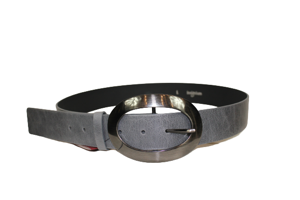 Wykonany z naturalnej skóry, z dużą i ozdobną klamrą w kolorze szarego srebra.