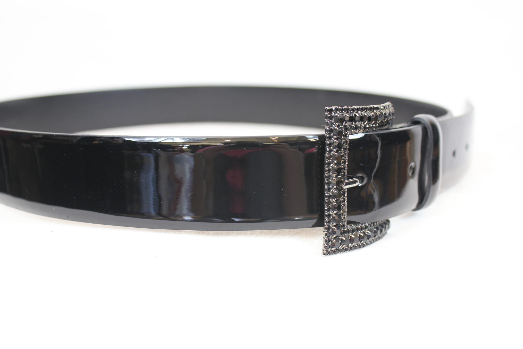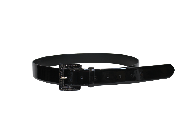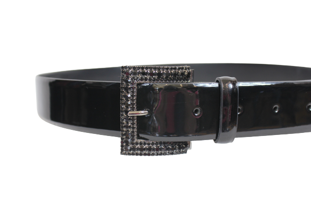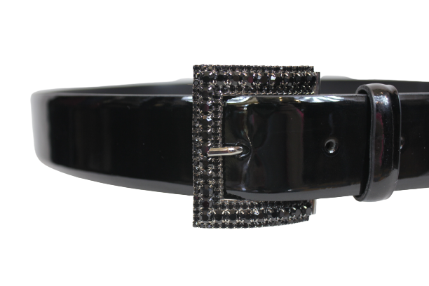 Wykonany ze skóry naturalnej, lakierowanej z bardzo ładną klamerką z czarnymi cyrkoniami.